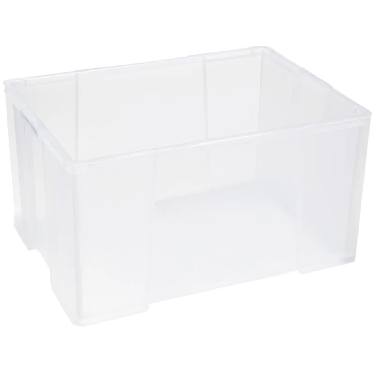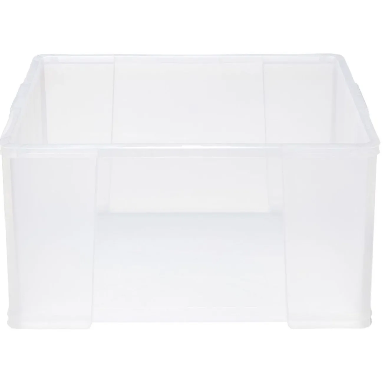 Box de rangement en plastique transparent avec couvercle à clips rouge. Idéal pour optimiser votre espace tout en organisant vos affaires.