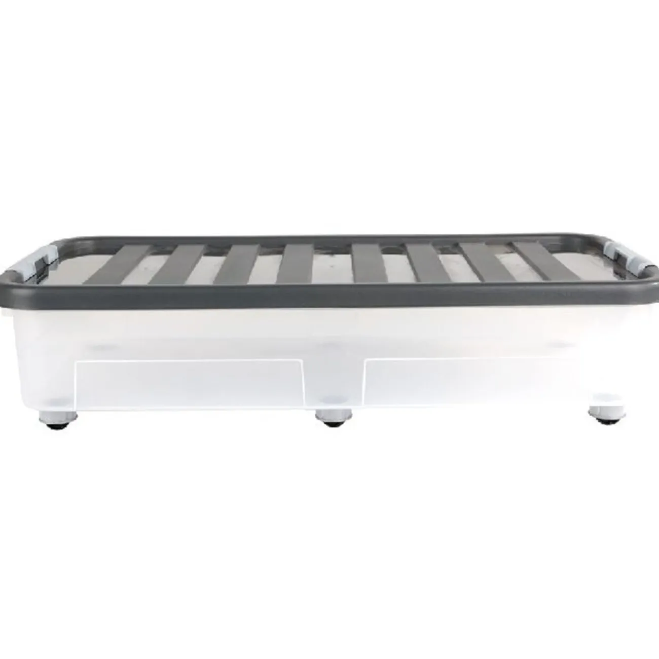 Box de rangement à roulettes 40L, de dim. 80x40x18 cm, plastique. Diff. coloris, disponibilité selon arrivage.