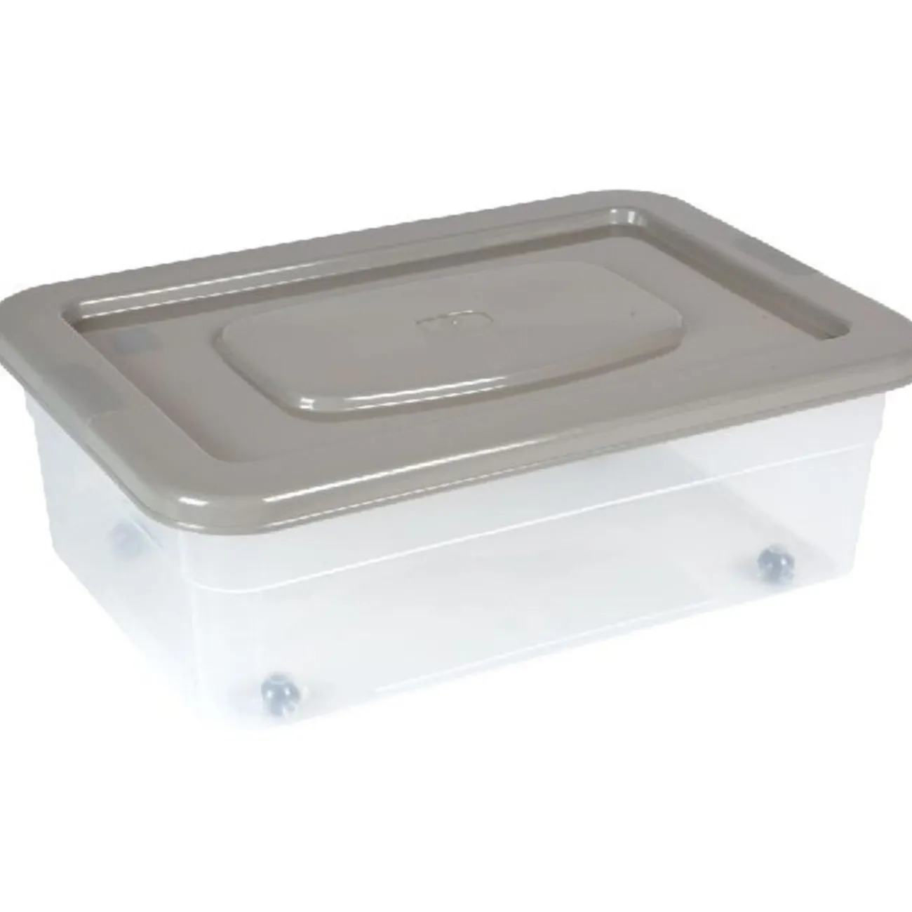 Box dessous de lit à roulettes 24L de dim. 52x35x19 cm, plastique.