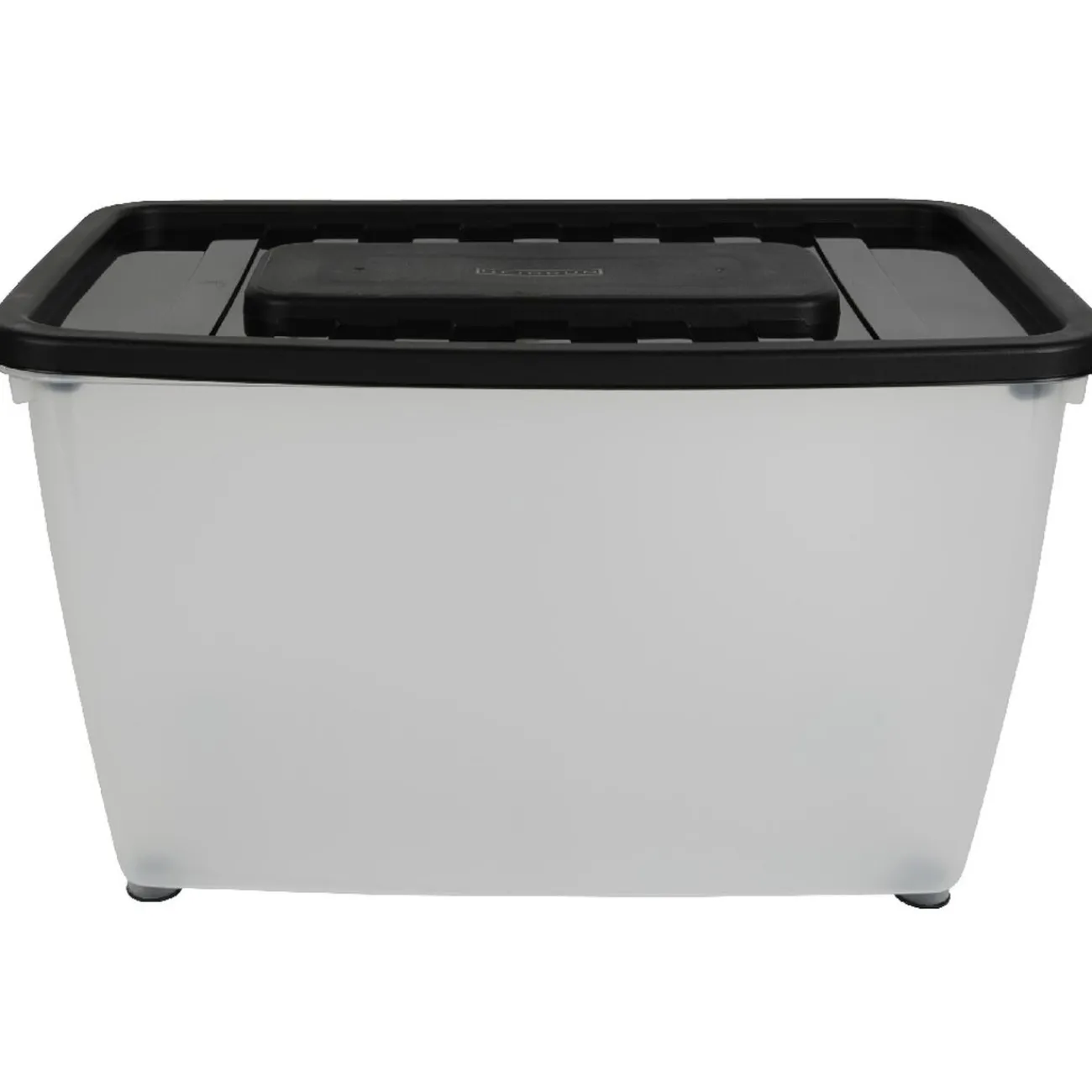 Lot de 3 box dessous de lit de 30L transparents avec couvercles noirs.