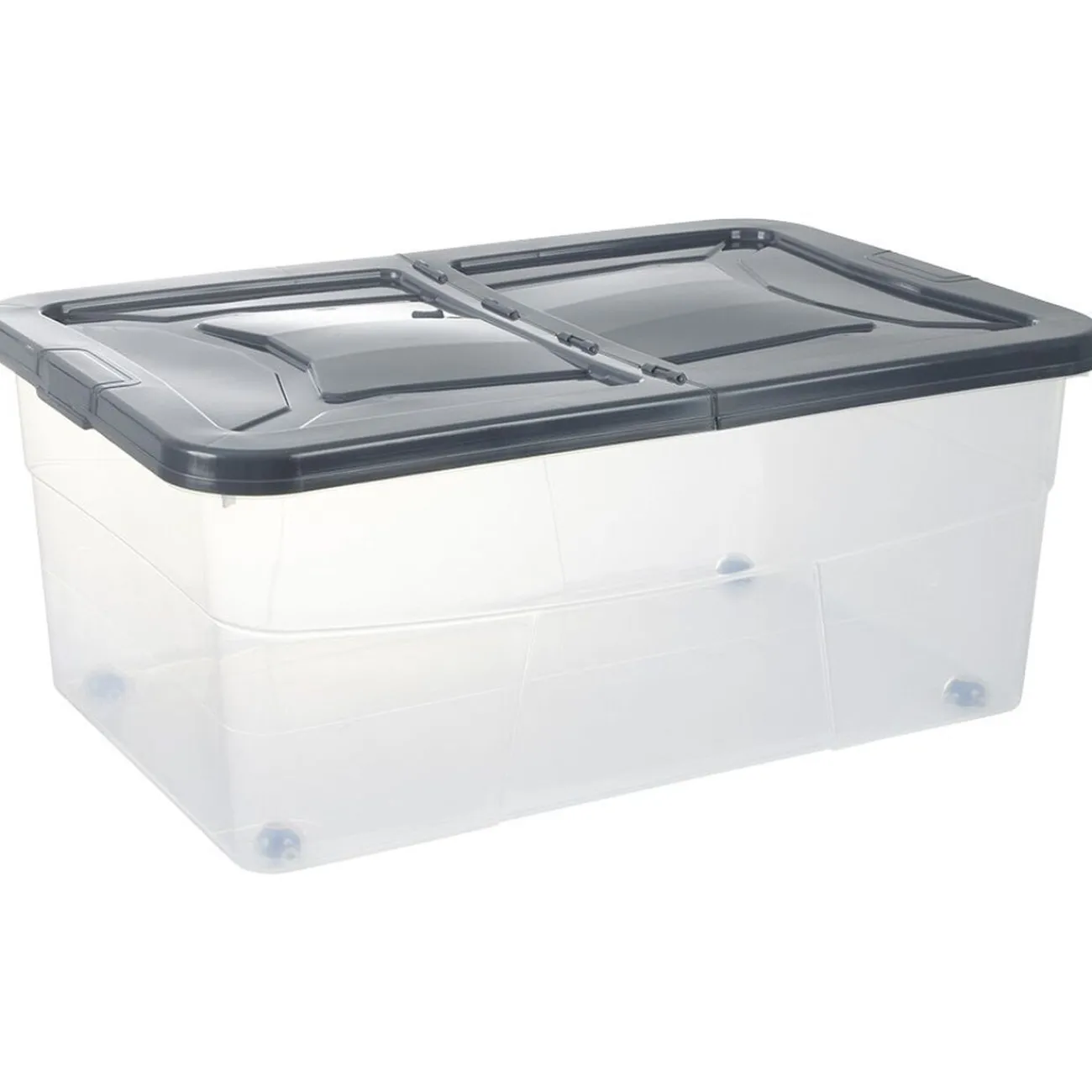Box dessous de lit en plastique gris, idéale pour optimiser votre rangement.