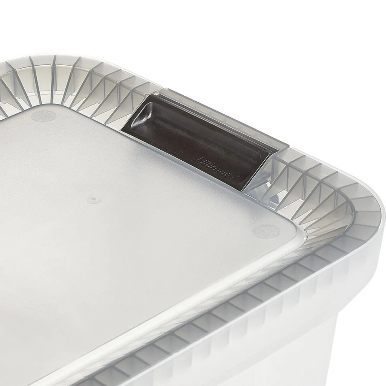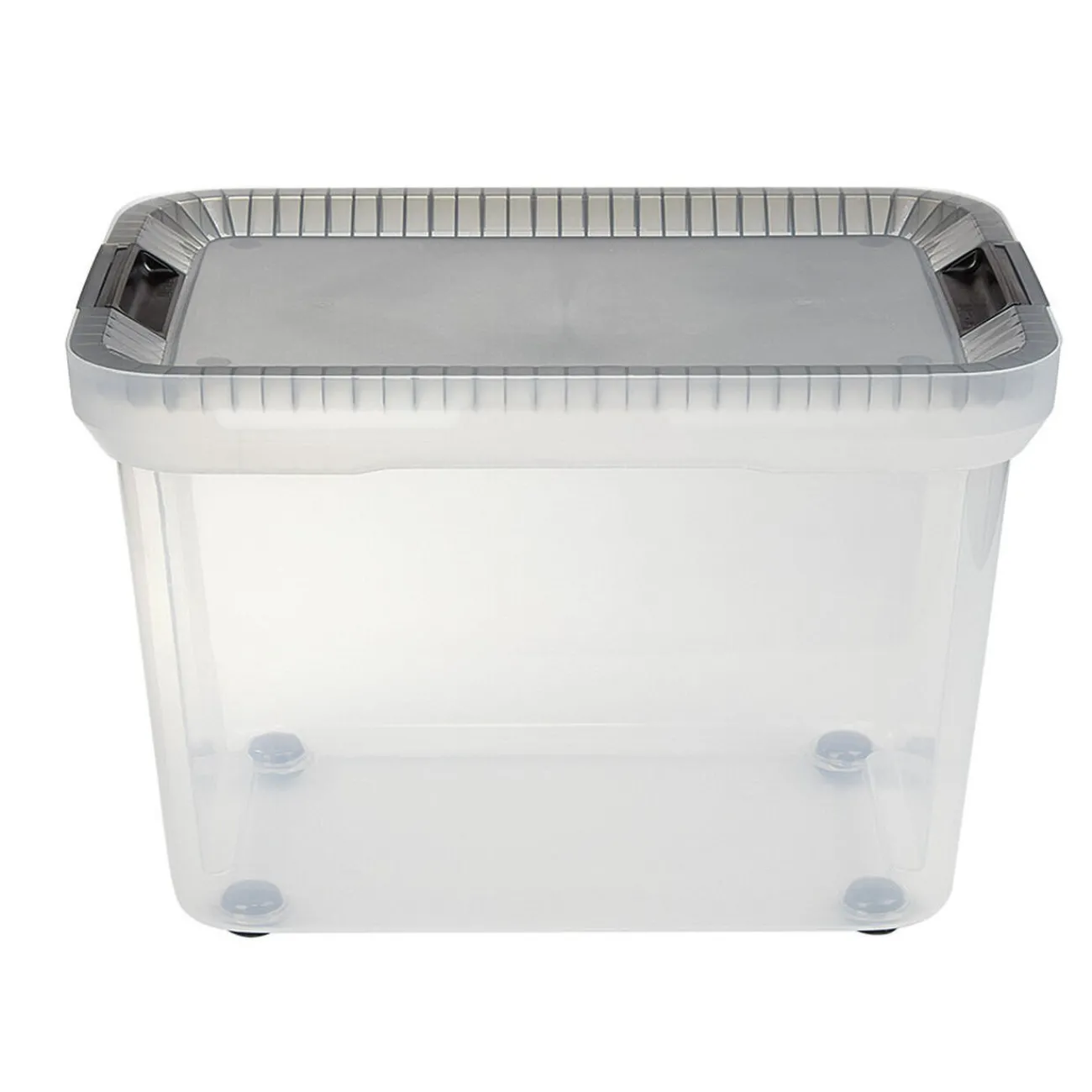 Offrez-vous un rangement supplémentaire avec cette box multi-directionnelle 50 L munie deroulettes pivotantes à 360°, couvercle gris et clips noirs.