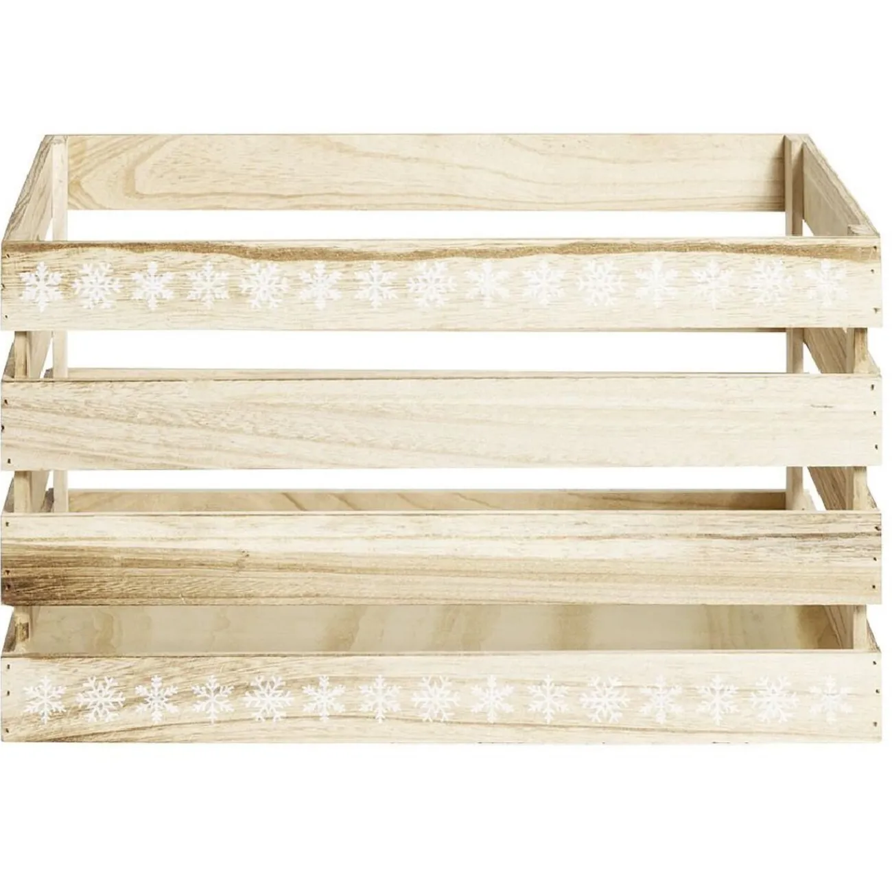 Pour une touche décorative dans un style hivernal, optez pour cette caisse de rangement en bois à motifs flocons blancs.
