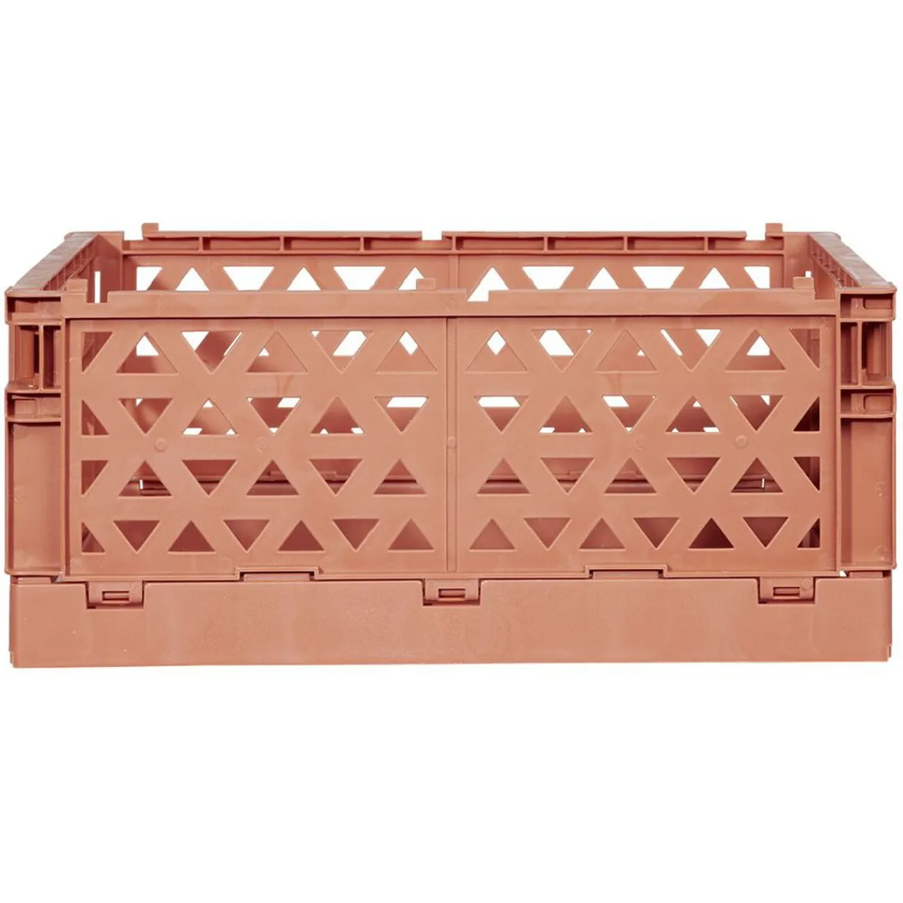 Caisse pliable, empilable et coulissante de couleur marron, avec un porte-étiquette pour mieux les distinguer. Parfaite pour optimiser votre rangement.