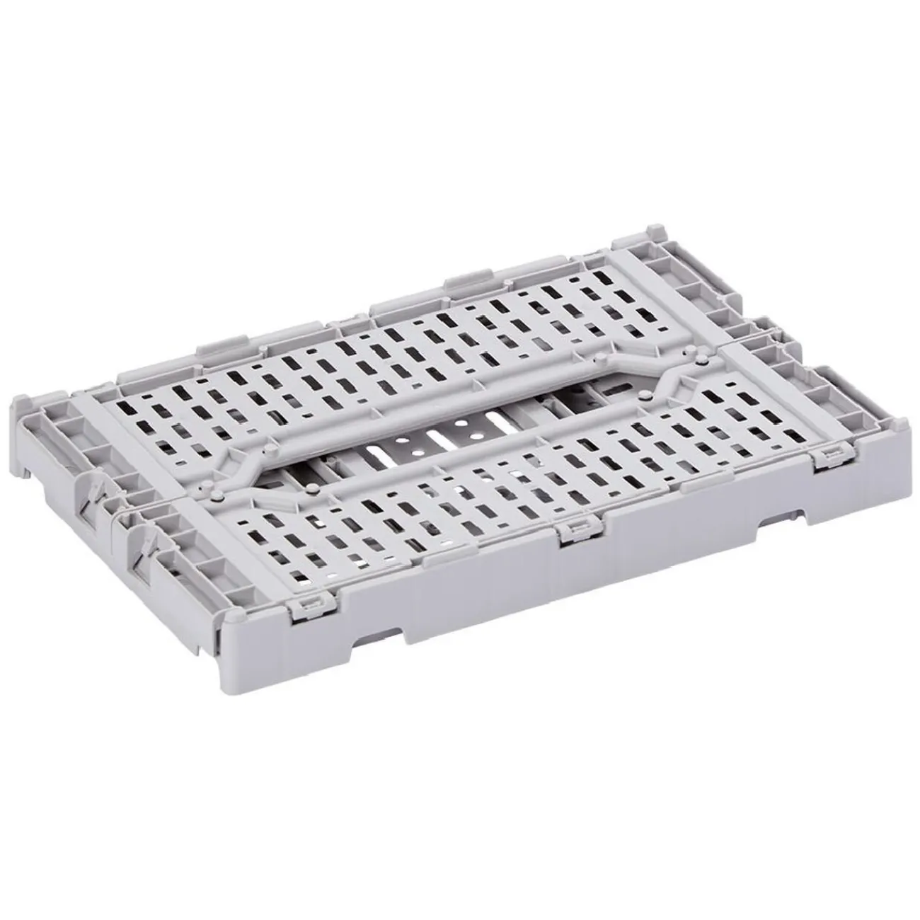 Casier pliant d’une contenance de 4 litres en plastique de couleur grise.