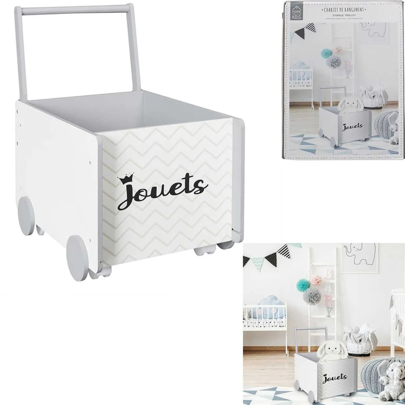 Ce chariot en bois gris et blanc avec inscription « Jouets » viendra apporter un rangement supplémentaire à la chambre de votre enfant, en plus d’agrémenter sa déco. Spacieux, votre enfant pourra y ranger ses jouets ainsi que ses peluches.