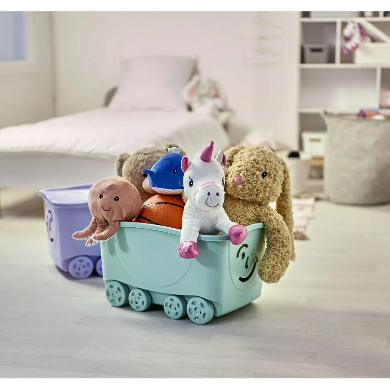 Pratique, ils pourront y ranger leurs jouets, mais aussi des livres, des vêtements ou des chaussures, le refermer grâce à son couvercle, et facilement le déplacer grâce aux 4 roulettes sur les deux côtés latéraux.