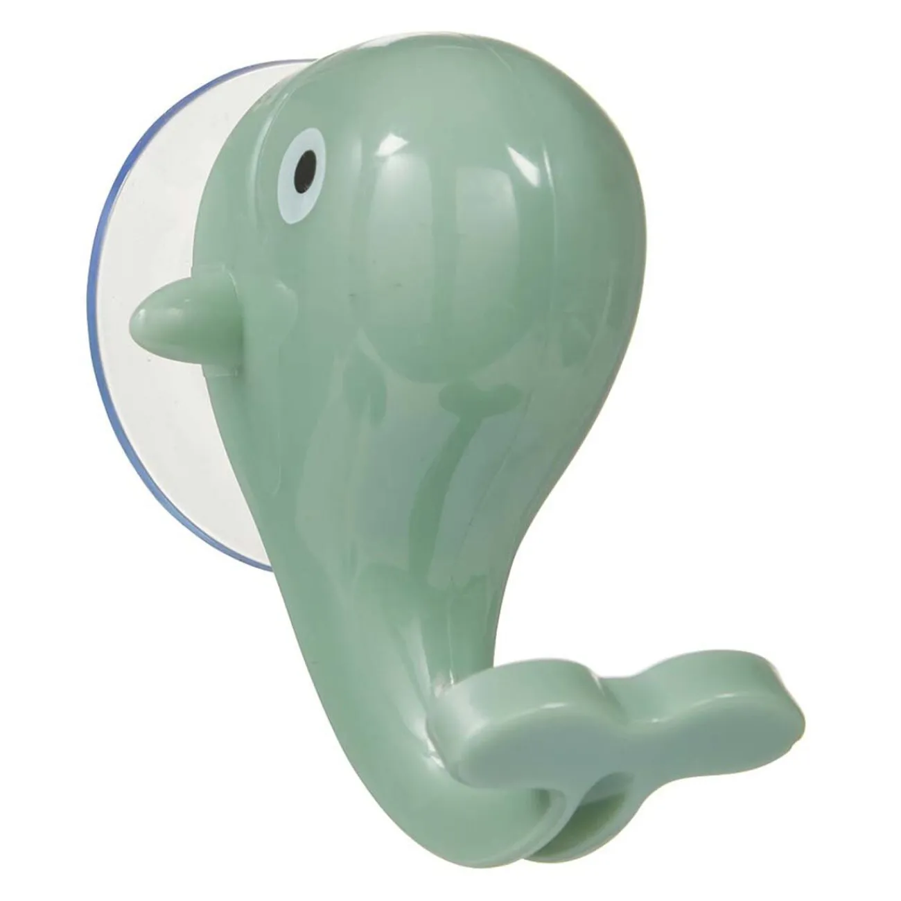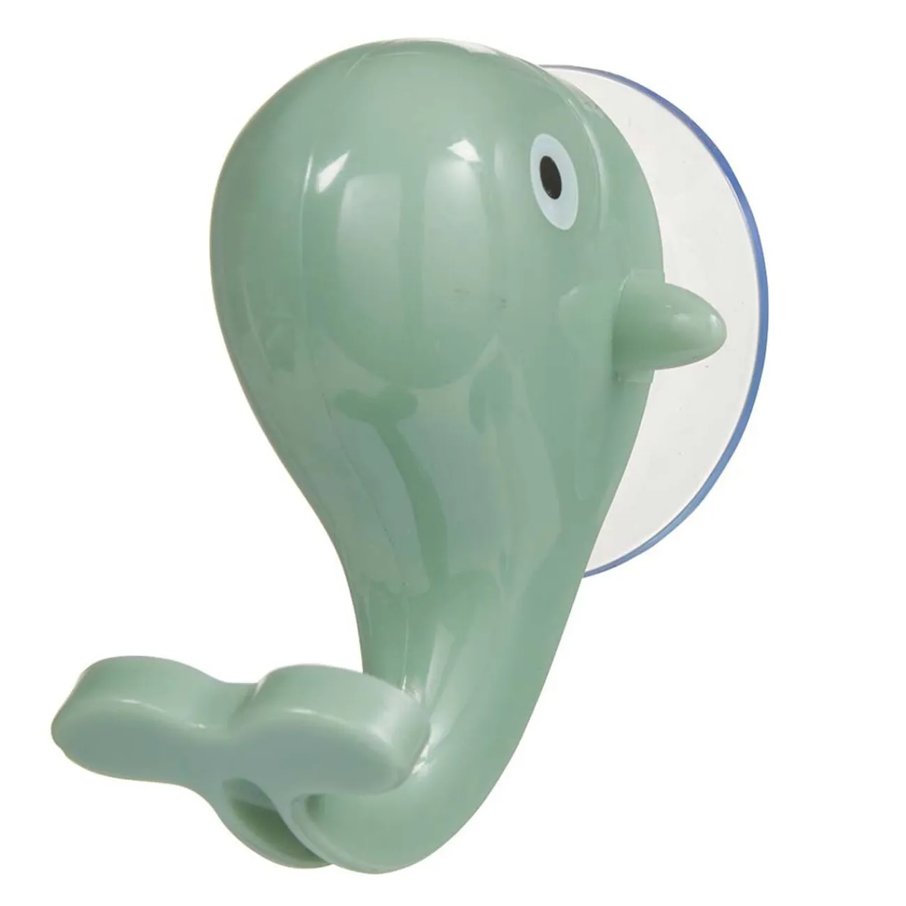 Crochet à ventouse en forme de baleine de couleur verte.