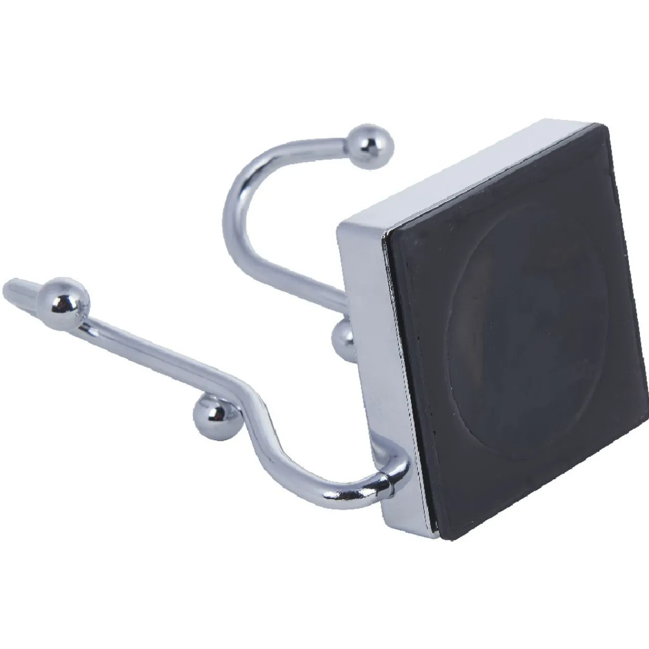 Optez pour ce double crochet à ventouse en métal gris pour suspendre serviettes, gants et autres accessoires de toilette dans la salle de bain.