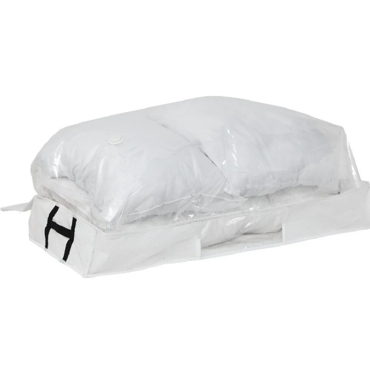 Housse de rangement dessous de lit avec sac vide air intégré pour un maximum de rangement dans un minimum de place.