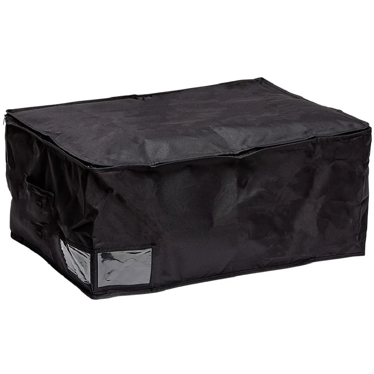 Cette boîte de rangement noire avec sa housse vide air stockera couettes, draps, vêtements, etc.