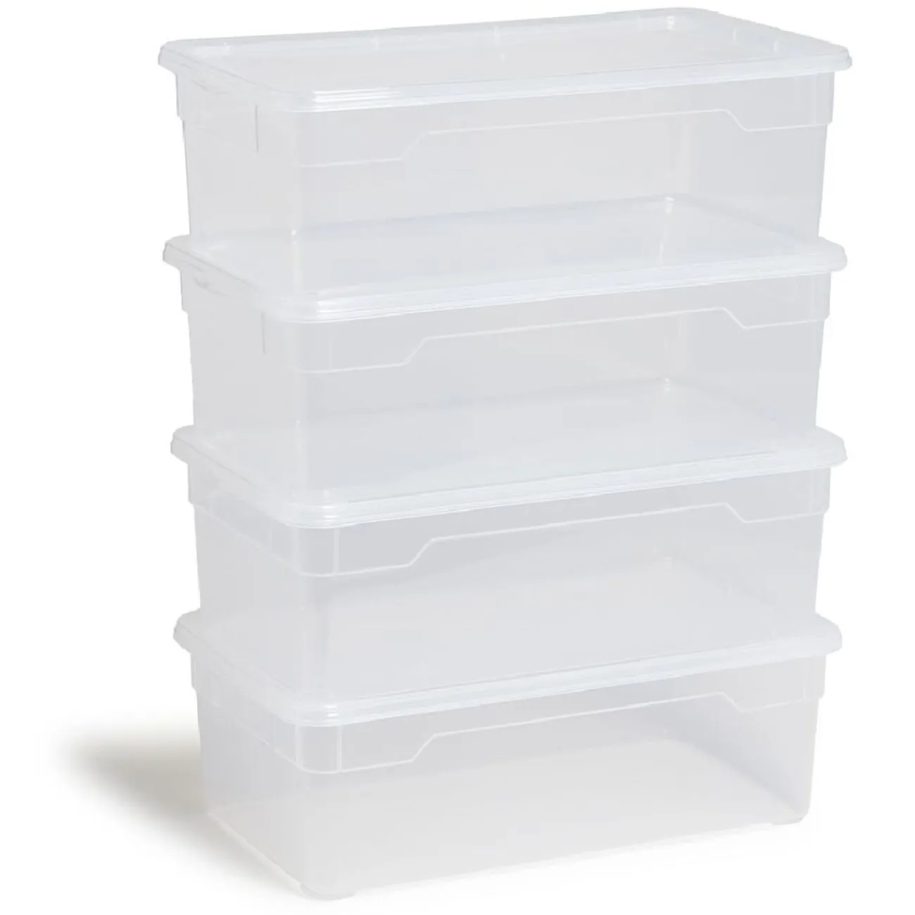 Lot de 4 boîtes de rangement transparentes en plastique de 11L chacune, dotées de couvercles.