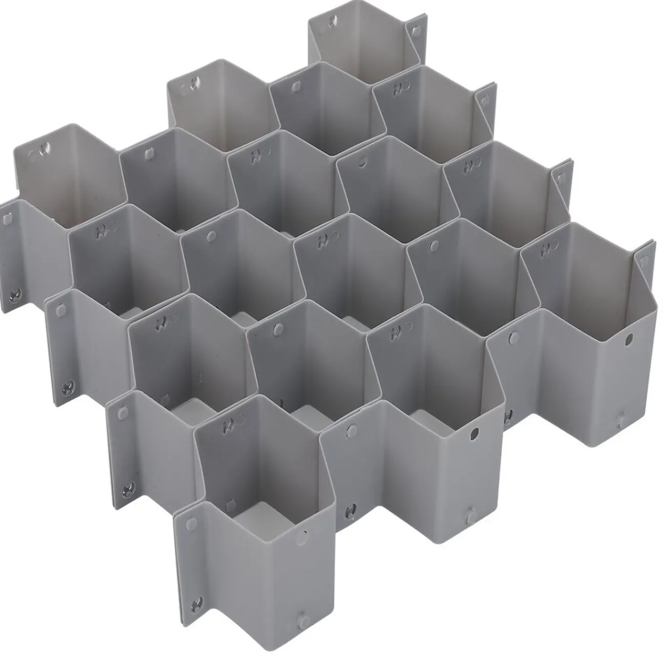 Optimisez l’espace de votre tiroir avec cet organisateur alvéolé à clips composé de 18 compartiments ajustables, jusqu’à 28 possibles en comptant les contours.