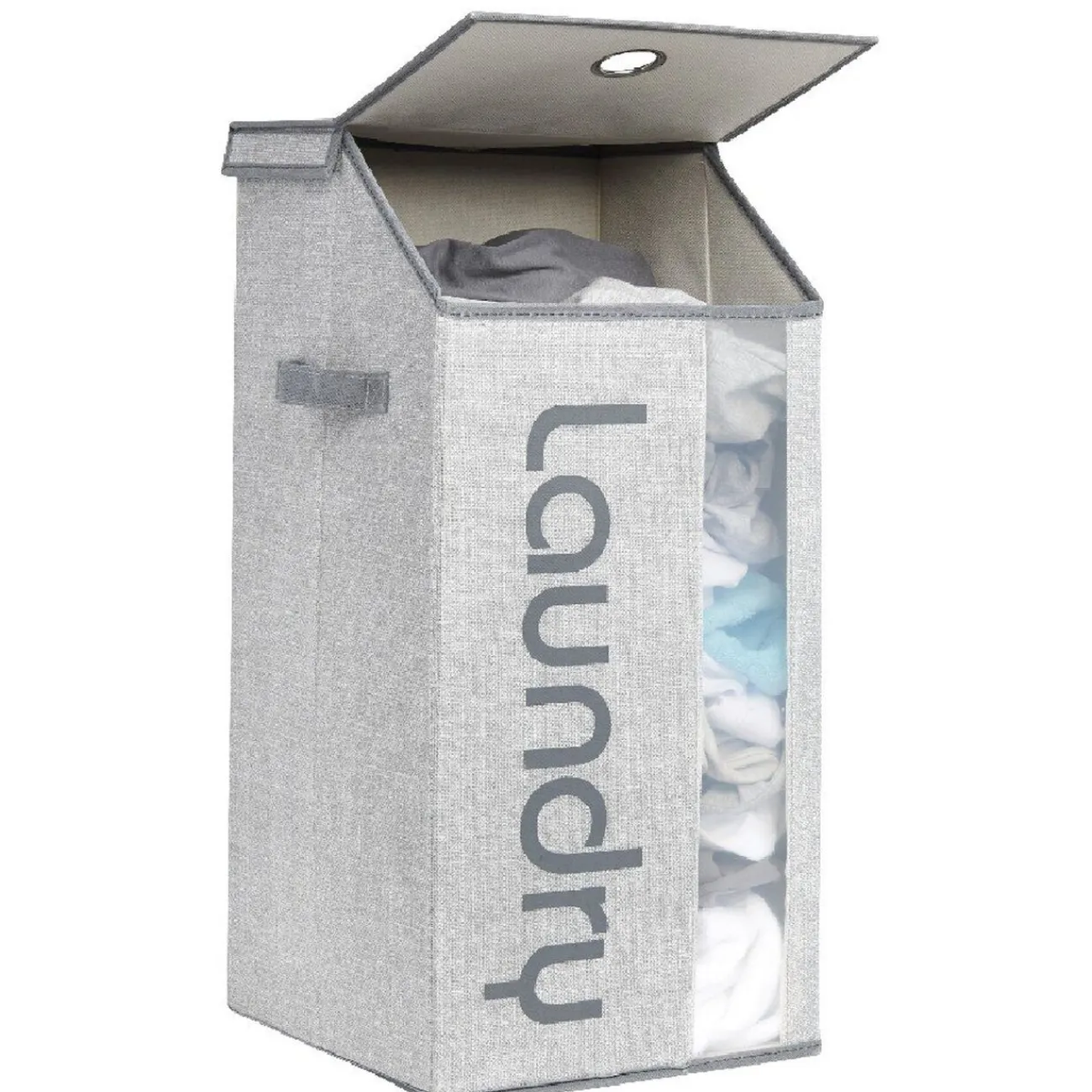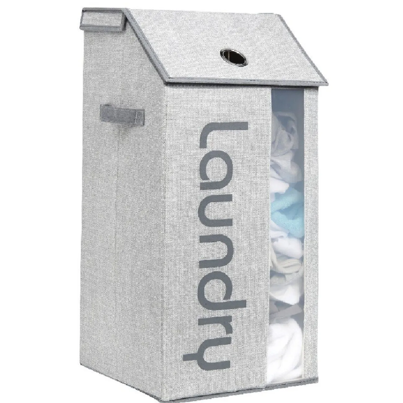 Gifi Rangement|Panier à linge grise repliable avec fenêtre