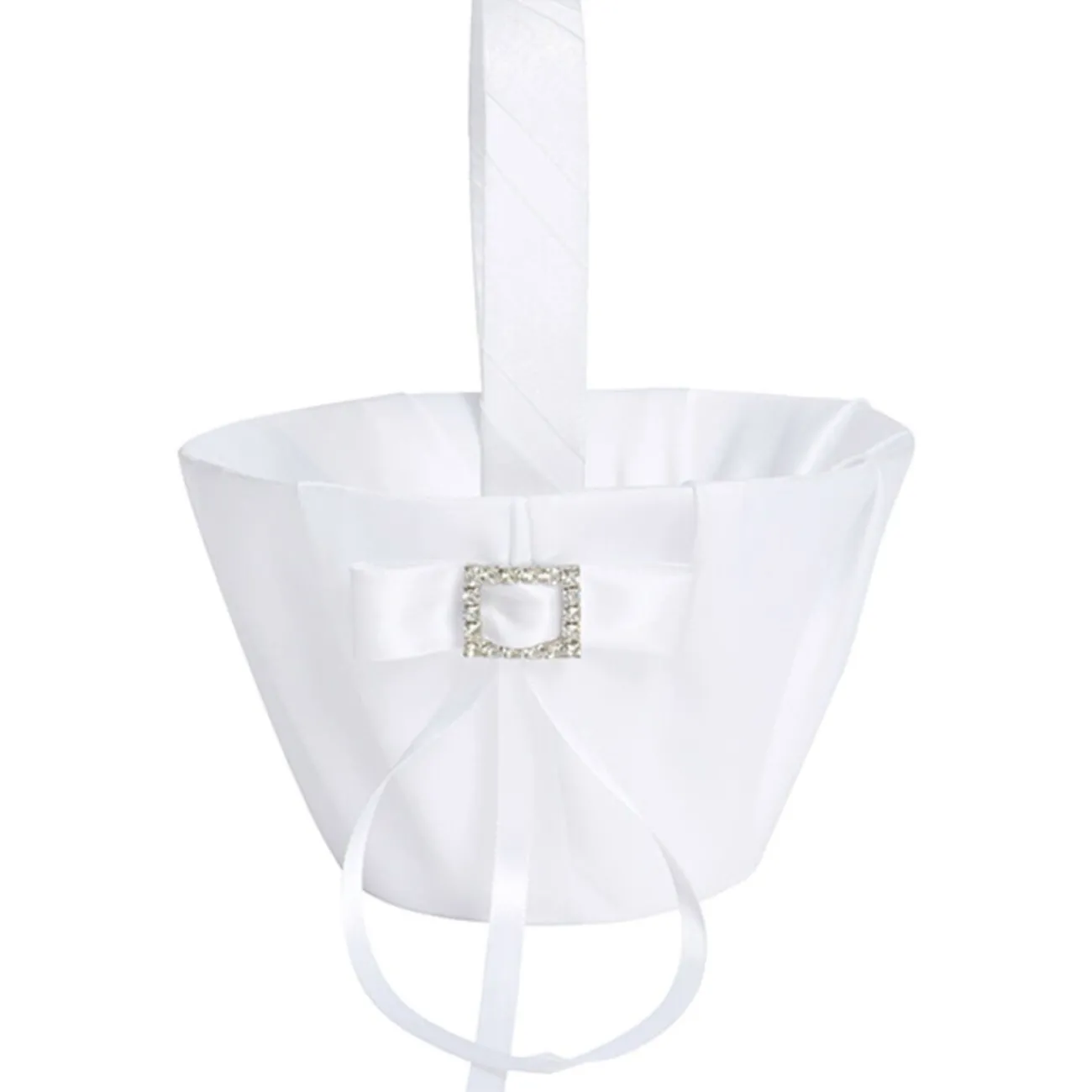 Panier blanc à pétales pour mariage, dim. Ø16xh.21 cm, polyester.
