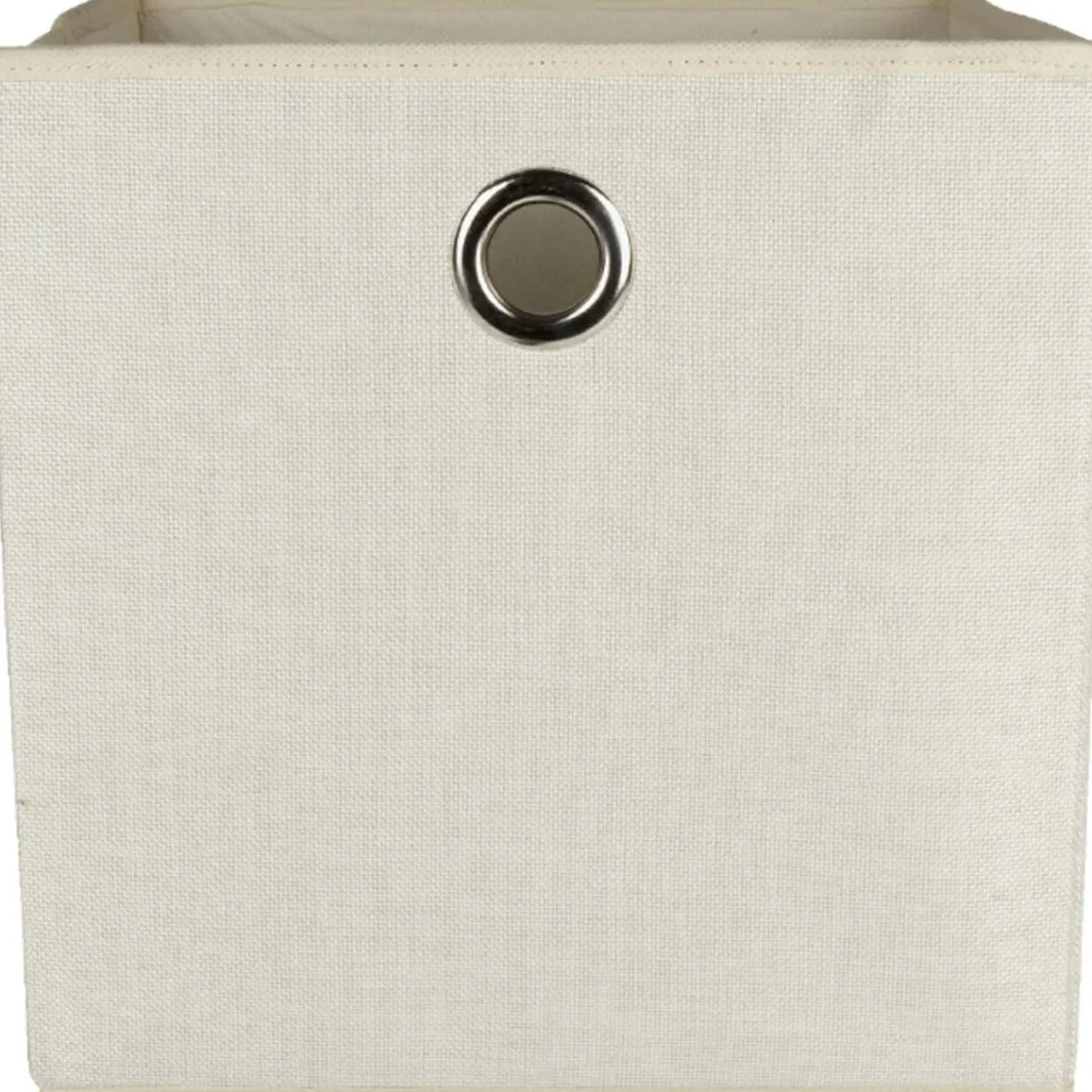 Panier de rangement déco blanc cassé pliable, à poser sur une étagère ou dans la chambre d’un enfant pour ranger jouets ou petits objets.