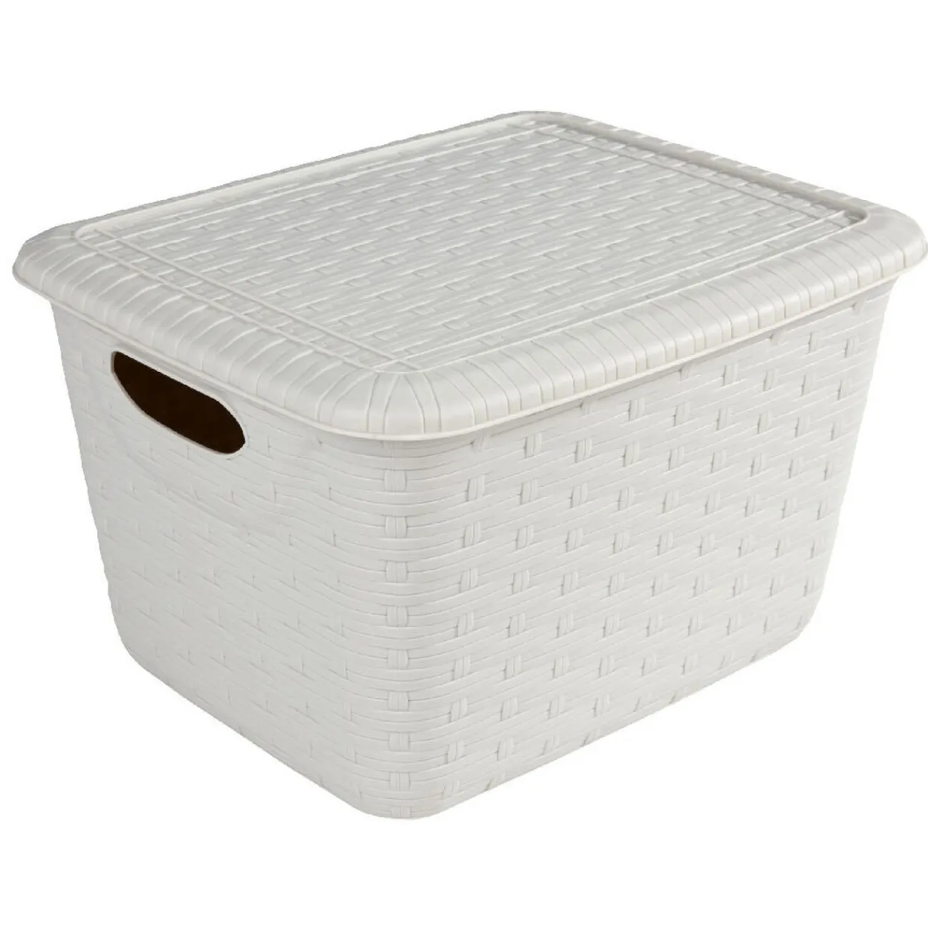 Panière de rangement effet tressé avec couvercle grise 14,8 L, dim. 35×27,5×21 cm, plastique.