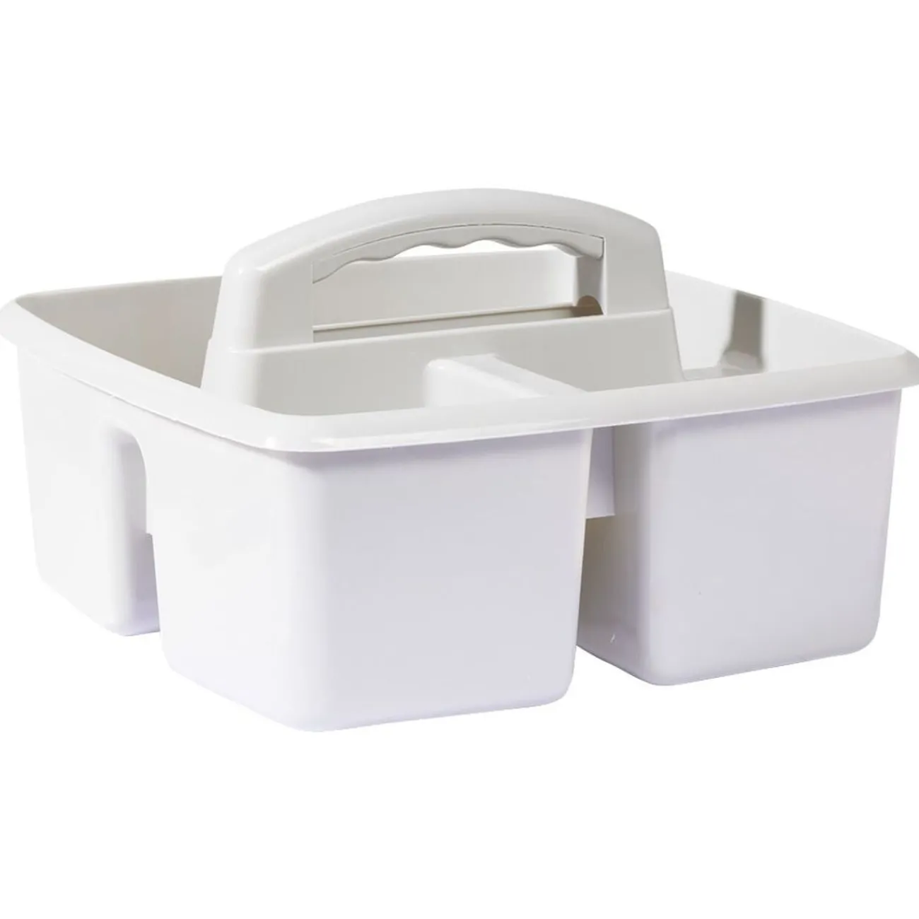Panier multiusage en plastique à 3 compartiments avec poignée de transport.