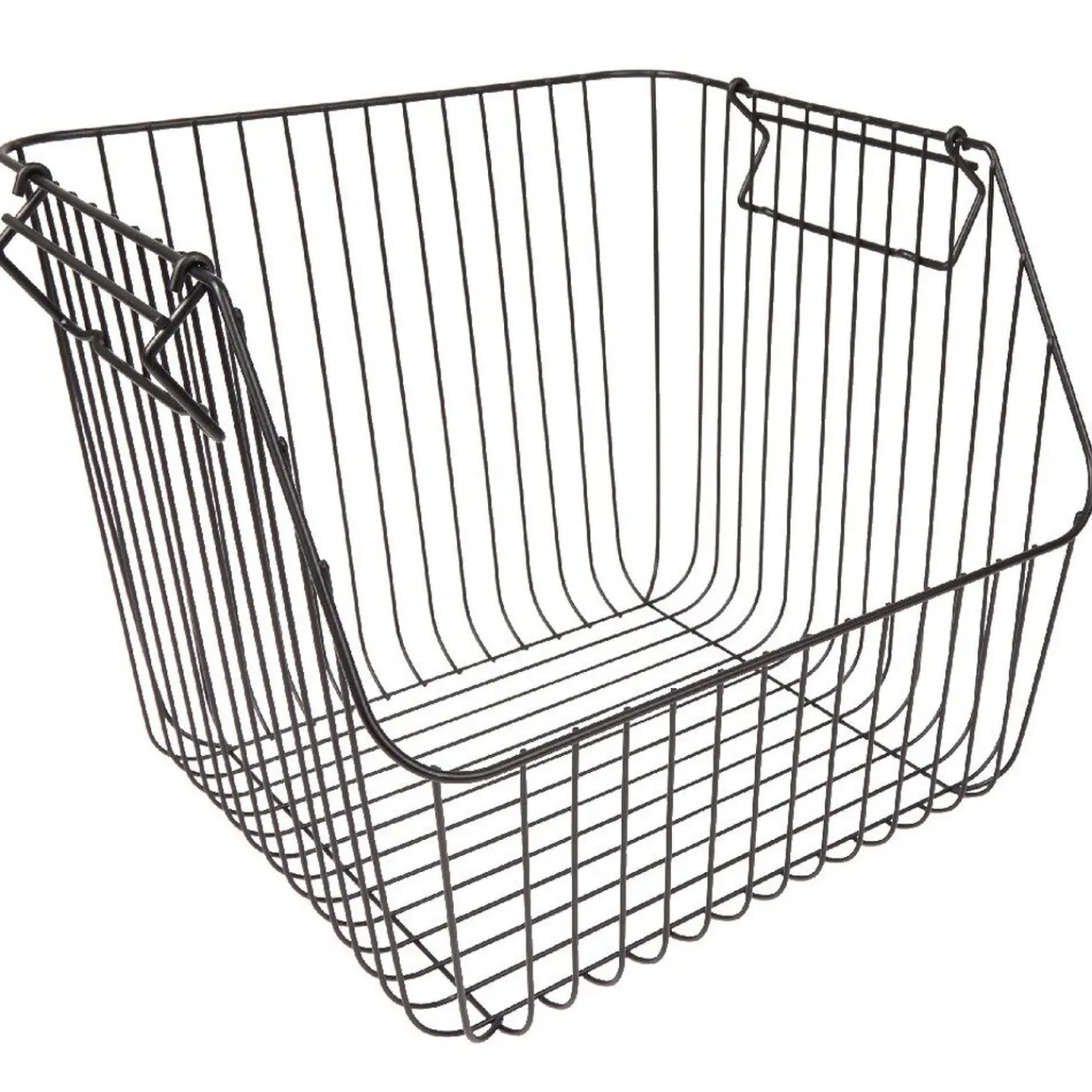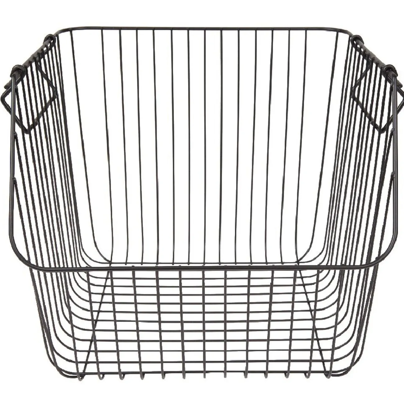 Optez pour ce panier au design filaire en métal noir, avec anses et superposable pour un accès direct au contenu.
