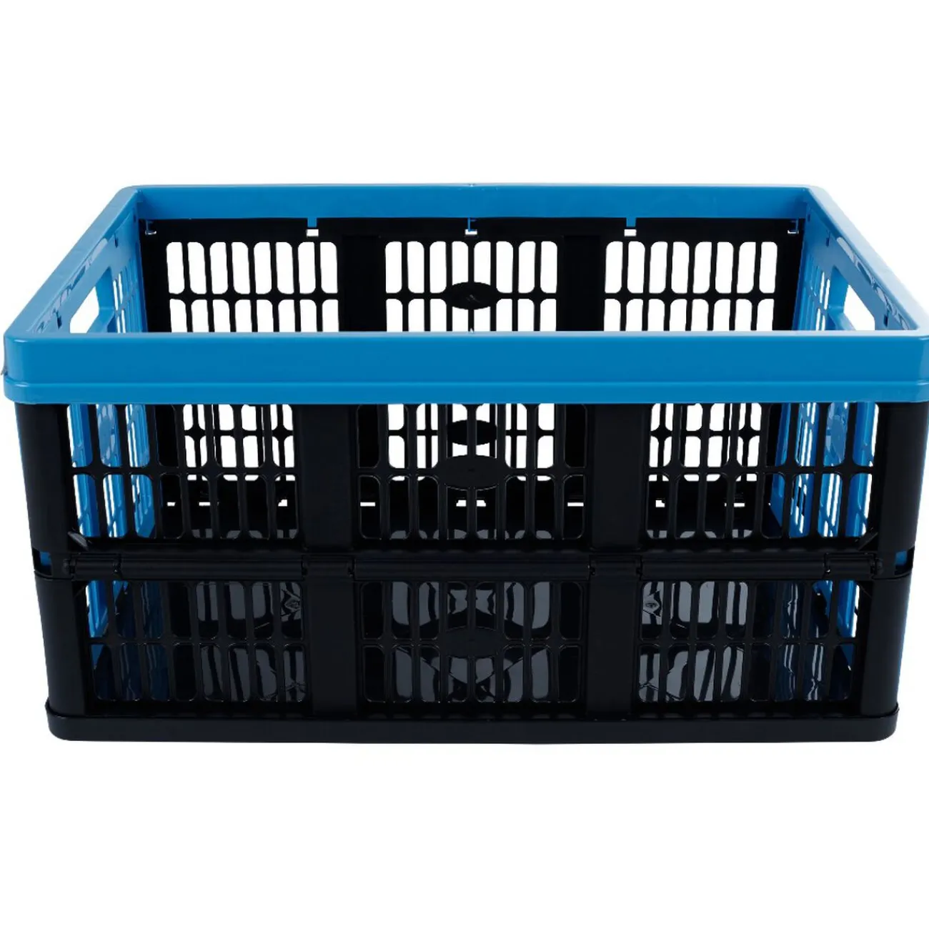 Ce panier bleu et noir est idéal pour stocker divers éléments.