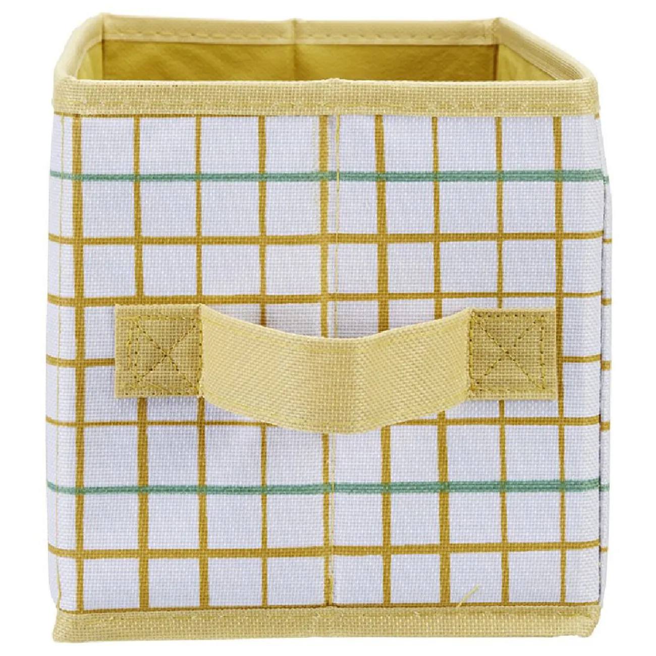 Modulez à l’infini avec la gamme de rangement Box Cube ! Notre panière de rangement Box Cube à imprimé carreau vert et jaune est idéale pour ça.