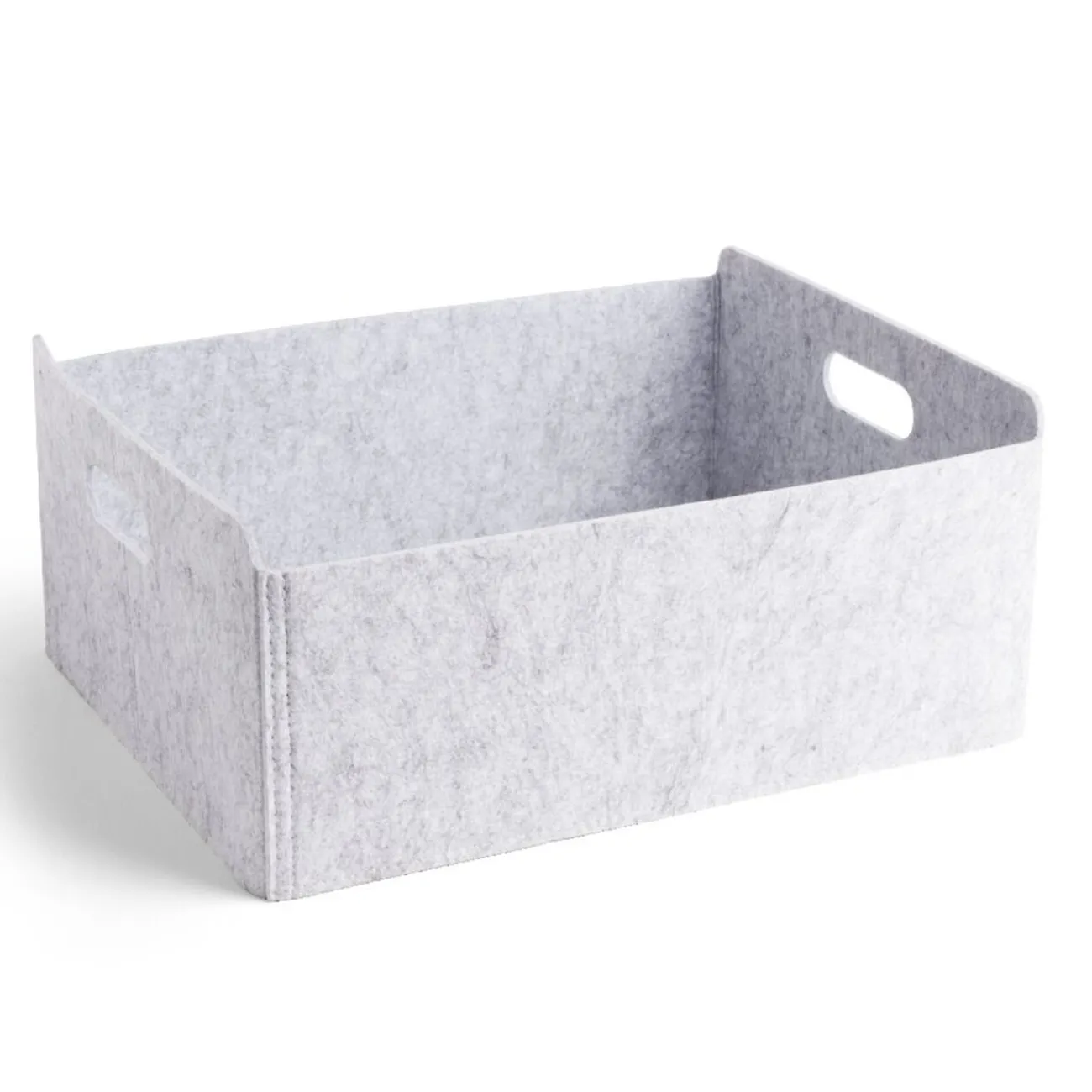 Cette élégante panière en coton effet feutrine, de dimensions 39 x 30,5 x 17 cm, offre une solution de rangement à la fois pratique et esthétique.
