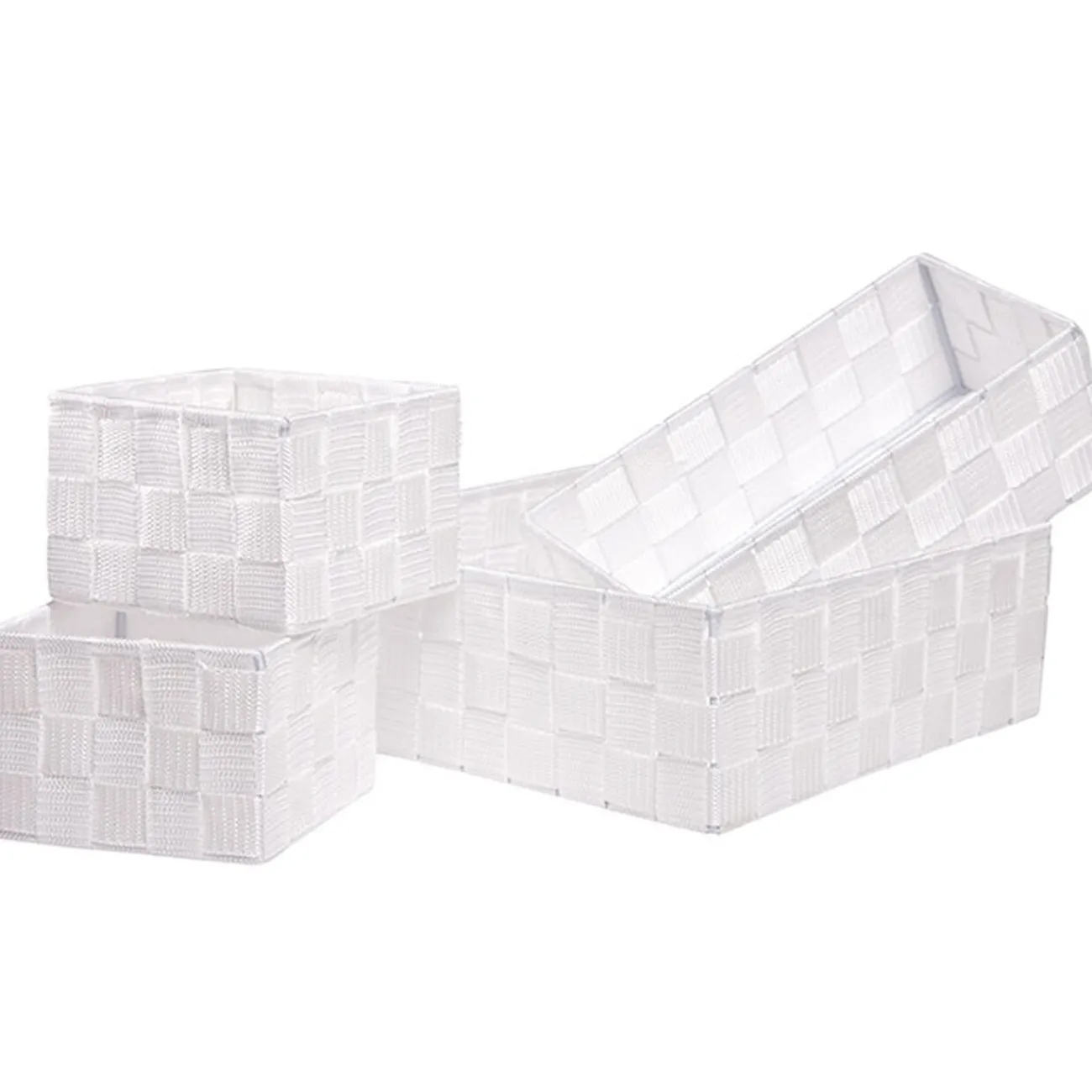 Panière déco blanche X4 en polyamide permettant de ranger vos affaires dans un tiroir ou sur une étagère.