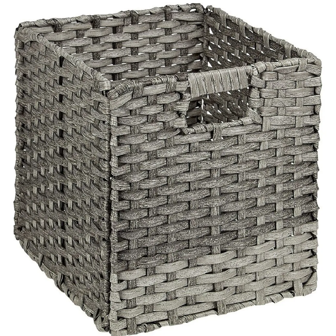 Panière de rangement carrée, tressée, en plastique.