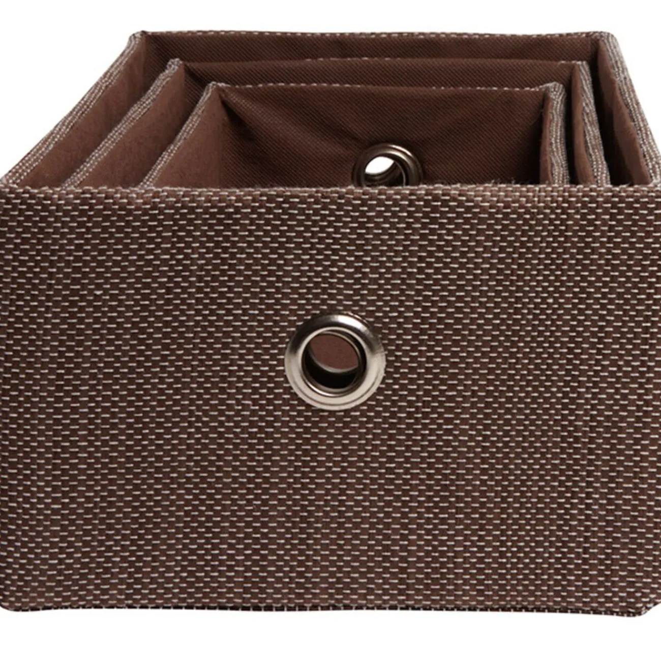 Panière déco pliable chocolat X3, prenant peu de place elles offrent des rangements supplémentaires pour votre chambre, votre bureau ou votre salon.