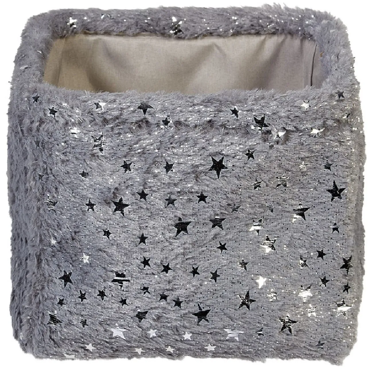 Lot de 2 panières de rangement à l’effet fourrure décoré d’une pluie détoiles scintillantes.