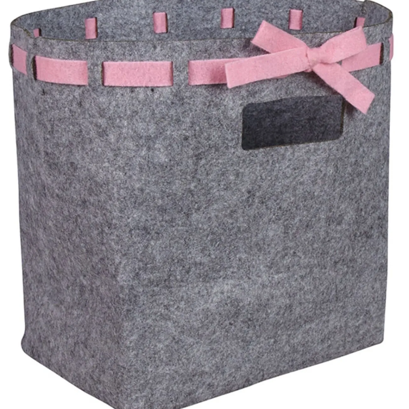 Panière grise avec ruban rose, dim. 22xh.26×15 cm, feutrine.