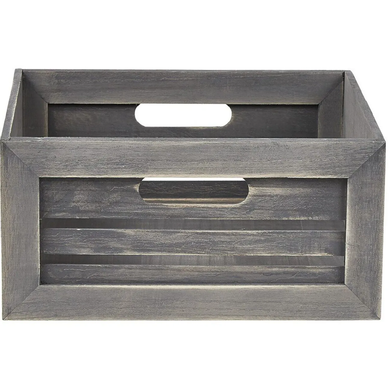 Panière grise en bois de particules cérusé. Idéale pour optimiser le rangement intérieur de vos meubles ou bien seule en simple caisse de rangement.