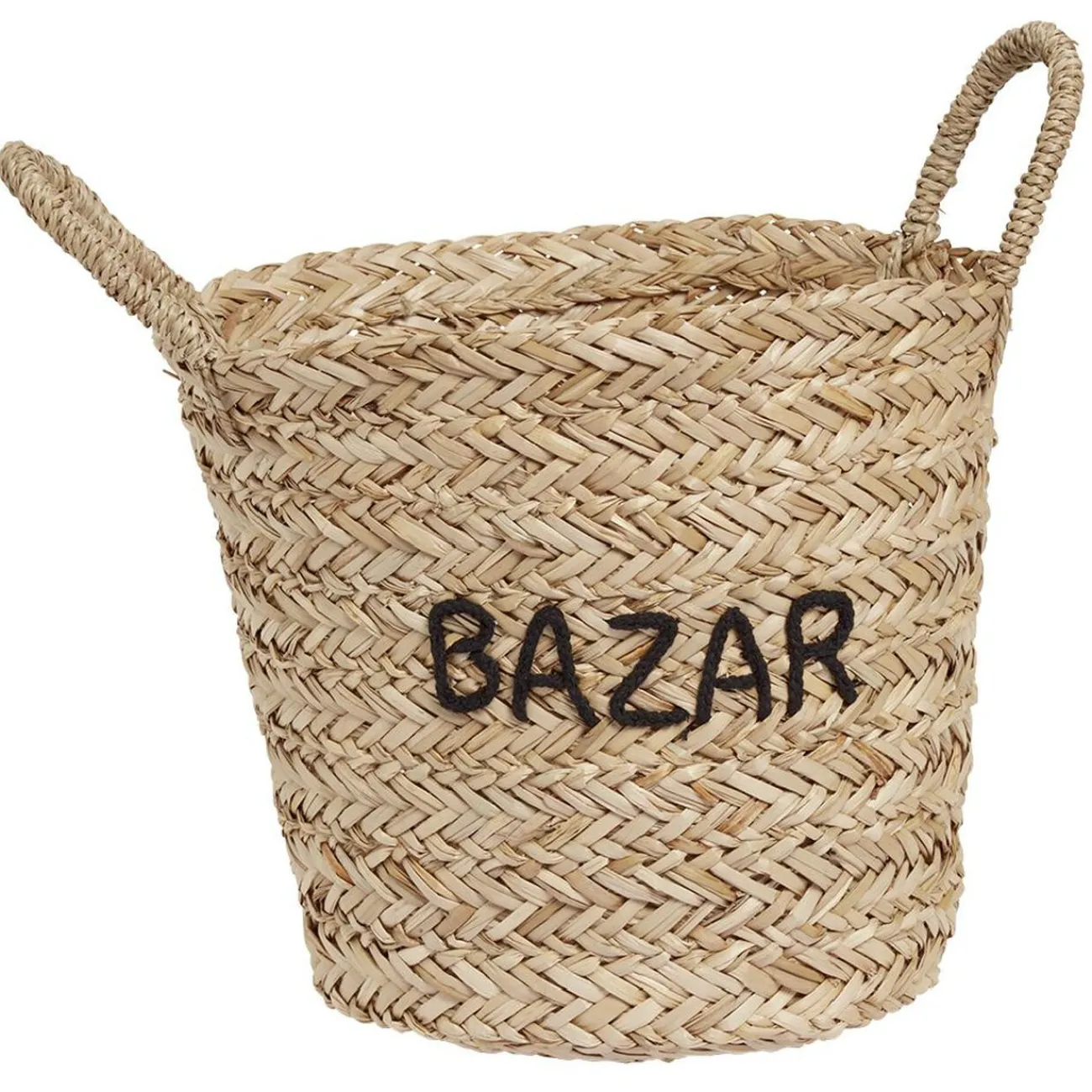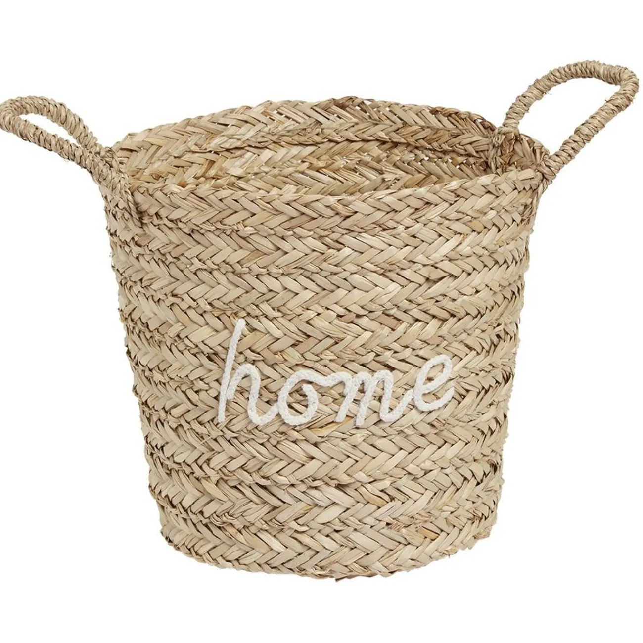 Panière en jacinthe d’eau tressé couleur naturelle avec mot inscrit : Home, Hello ou Bazar, disponibilité des modèles selon stock en magasin.