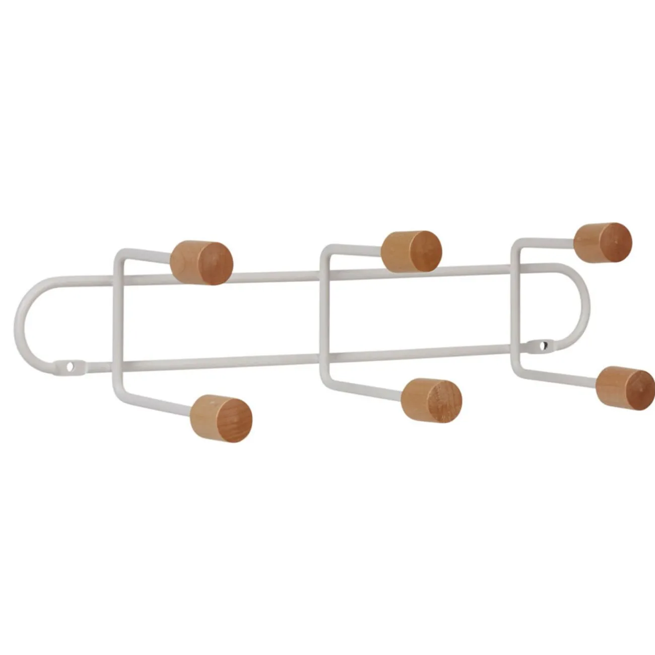 Optez pour un design sobre à la touche naturelle avec cette patère murale blanche en métal et ses 6 crochets en bois. Fixation simple et rapide.
