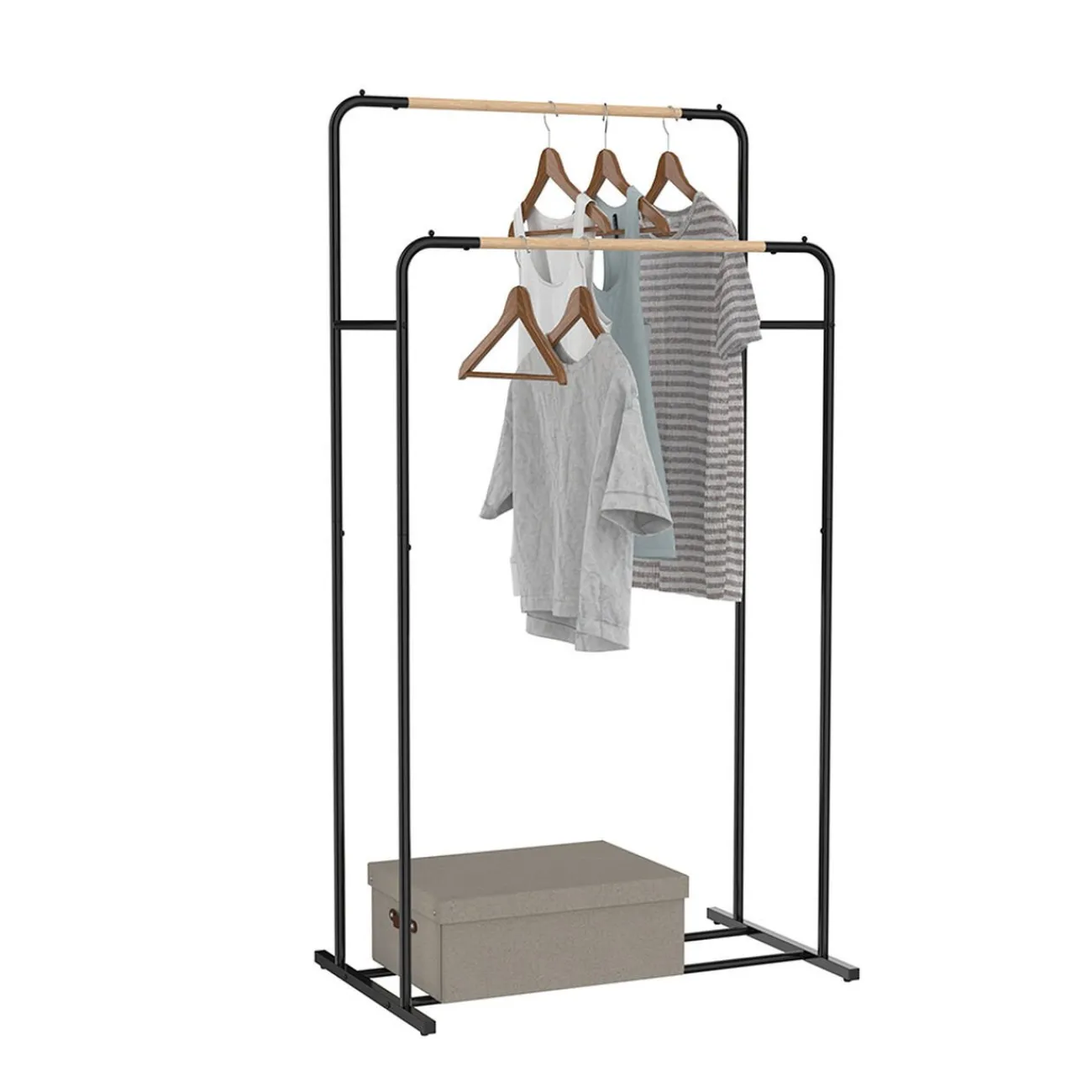 Ce portant double en métal noir est idéal pour optimiser le rangement et l’espace de votre dressing ou votre chambre.