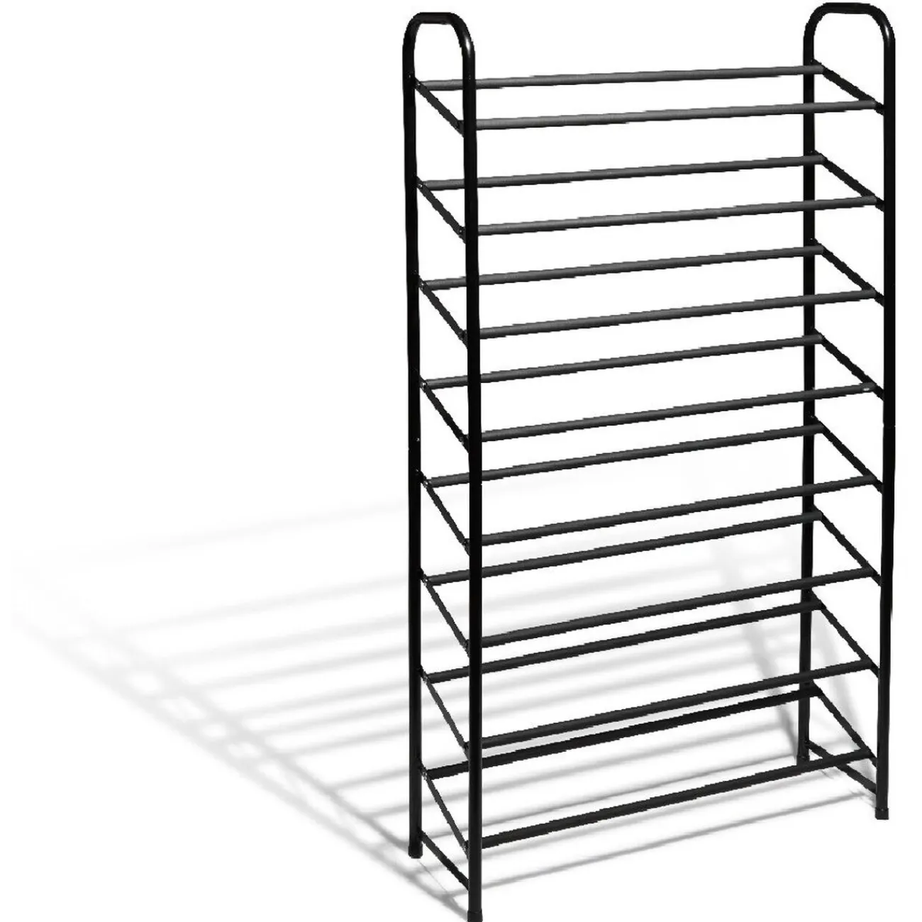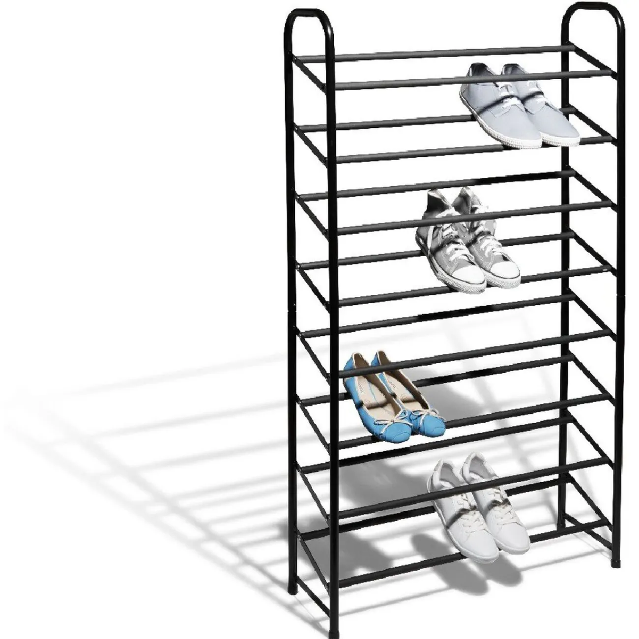 Range chaussures noir à 8 niveaux pour 32 paires.