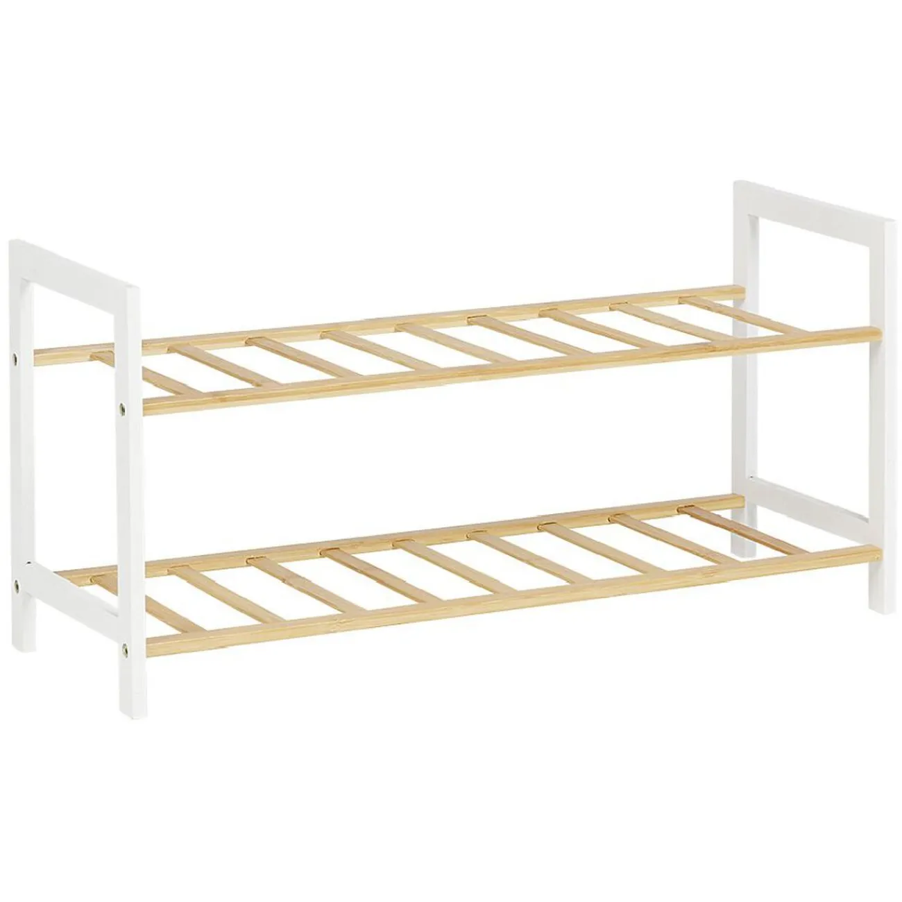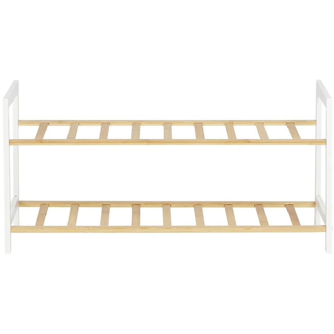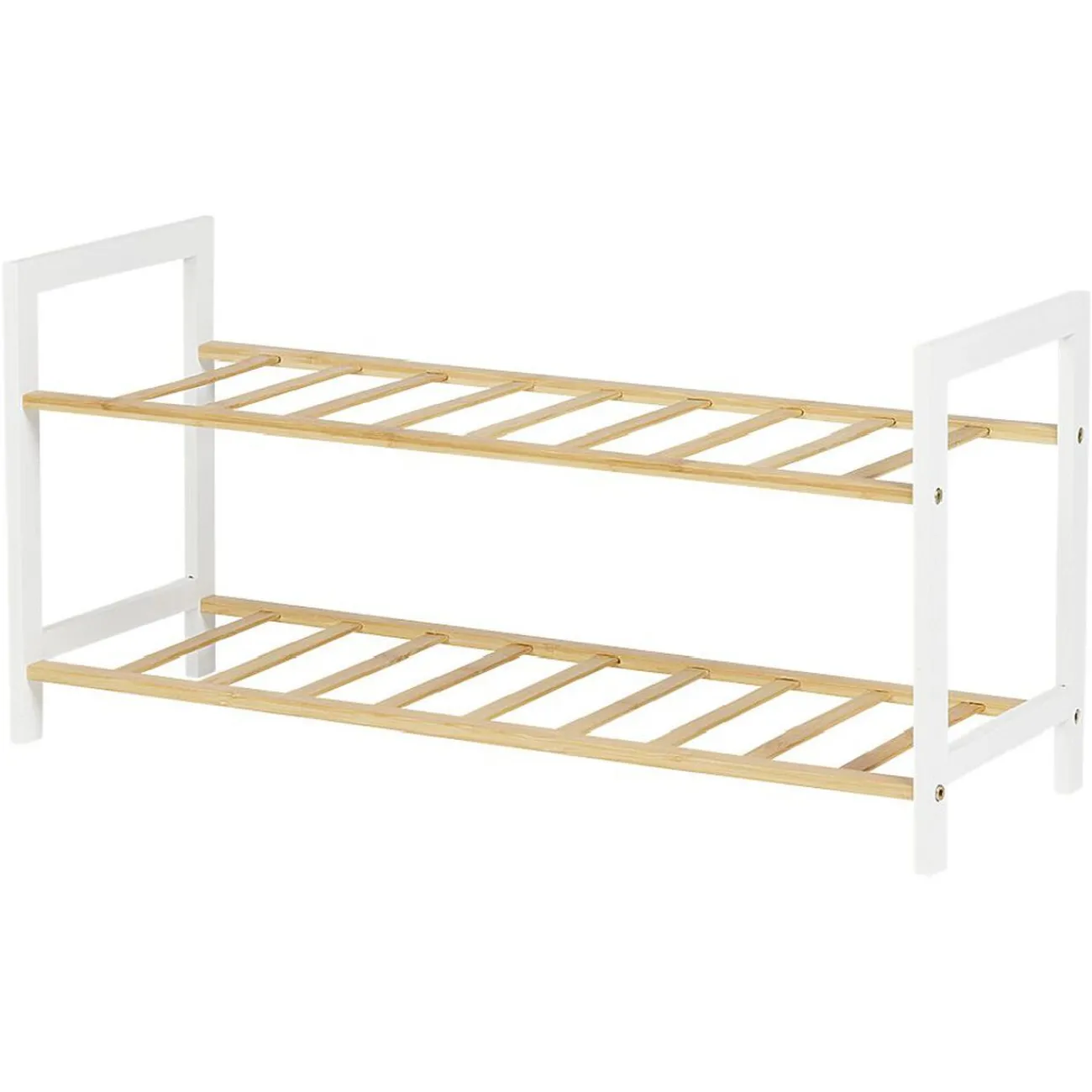 Range-chaussures en bambou avec 2 étagères pouvant accueillir jusqu’à 6 paires.