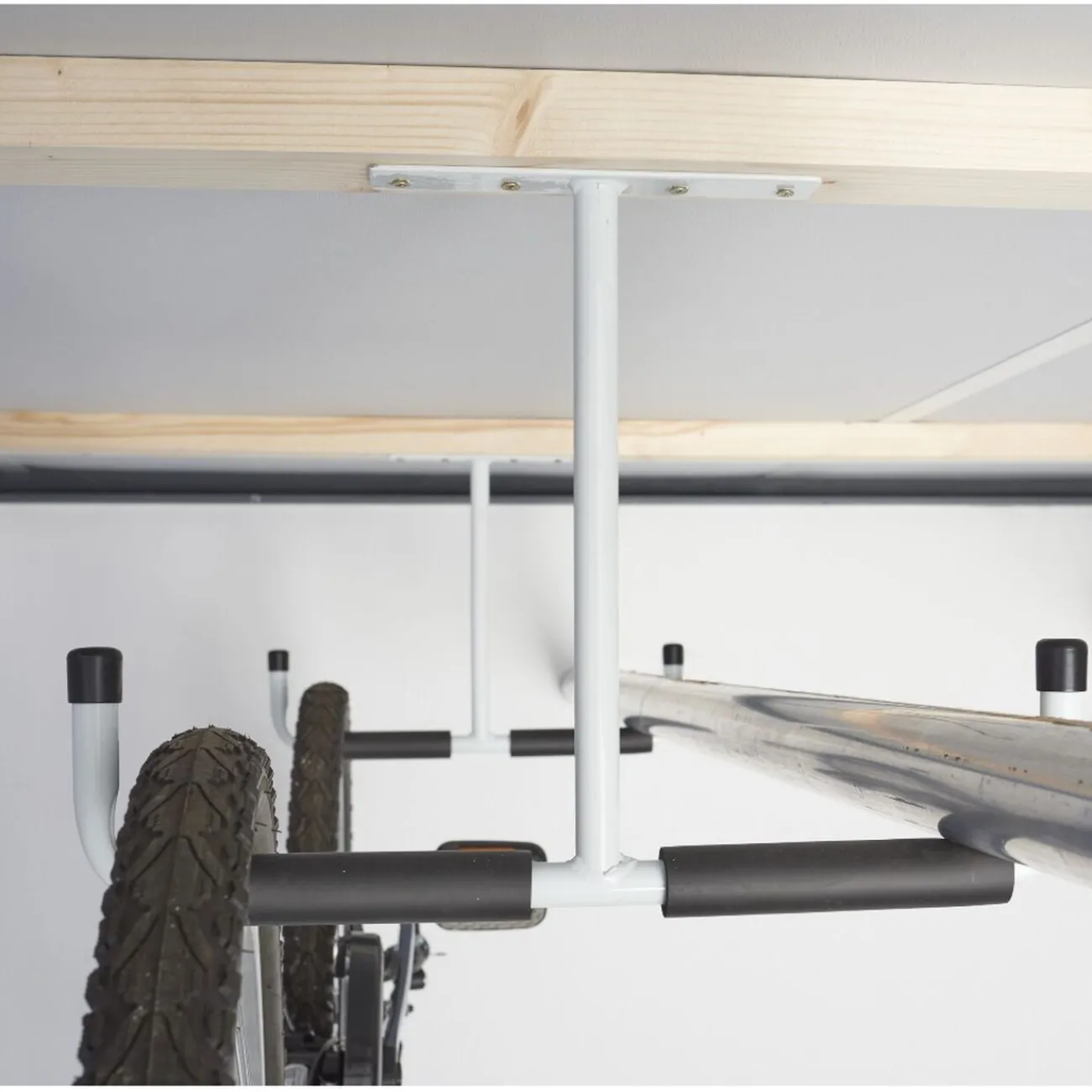 Vous pourrez y accrocher vos vélos, y déposer vos barres de bois, votre barre de musculation, y suspendre vos paniers ou sacs.