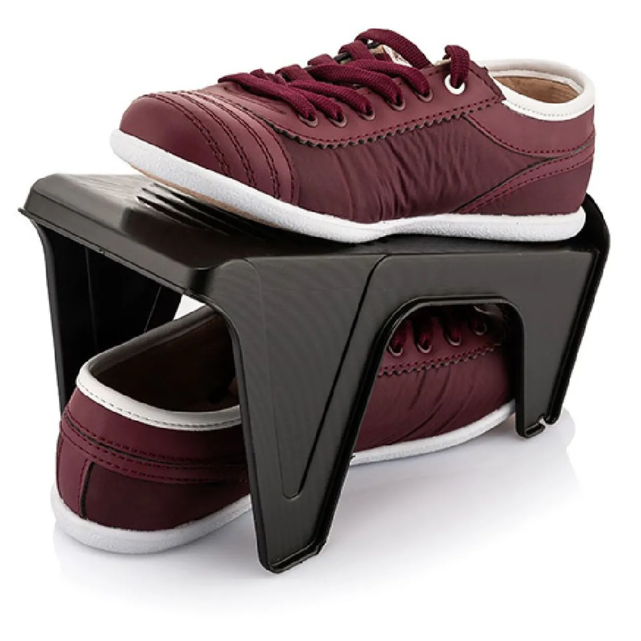 Pratique, ce support vous permet de ranger vos chaussures par paire tout en gagnant de la place. Idéal dans un dressing, un placard ou une étagère de votre entrée.