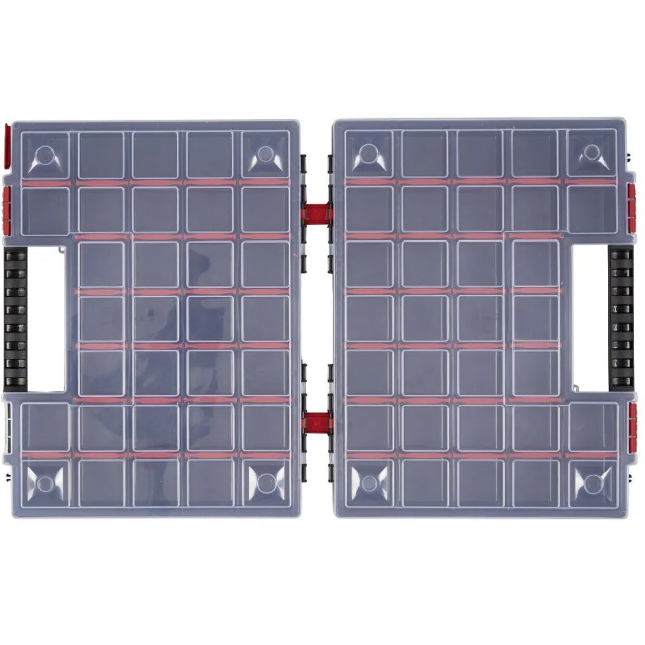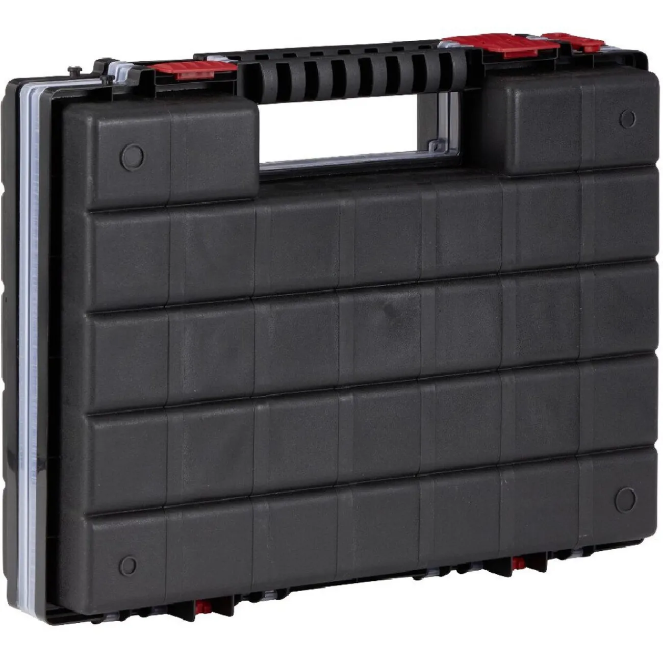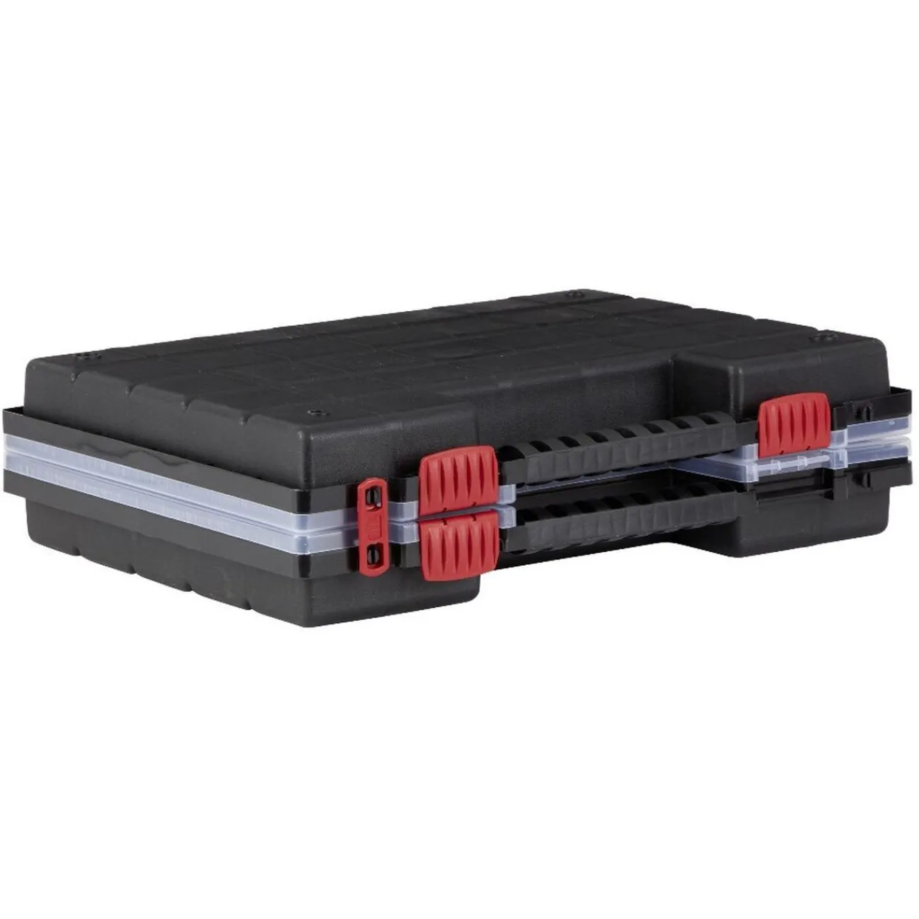 Rassemblez clous, vis, écrous et autres petits matériels de bricolage en un seul endroit grâce à cette valisette double. Une fois ouverte elle dispose de 2 couvercles transparents laissant apparaître son contenu. Les compartiments intérieurs sont modulables pour s’adapter aux différentes tailles de vis ou clous selon votre bon vouloir.