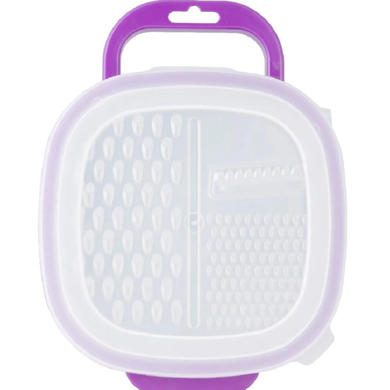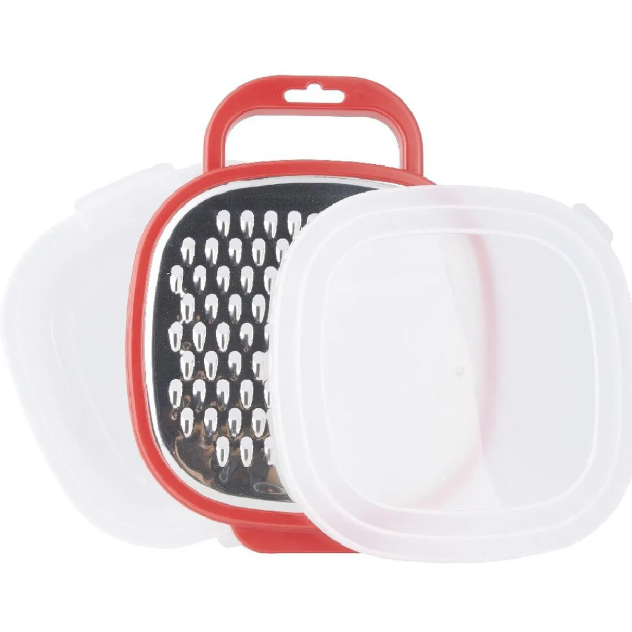 Rape 3 pièces avec son récipient et son couvercle. Idéale pour raper ses légumes, du fromages, du chocolat, et tout autre chose.