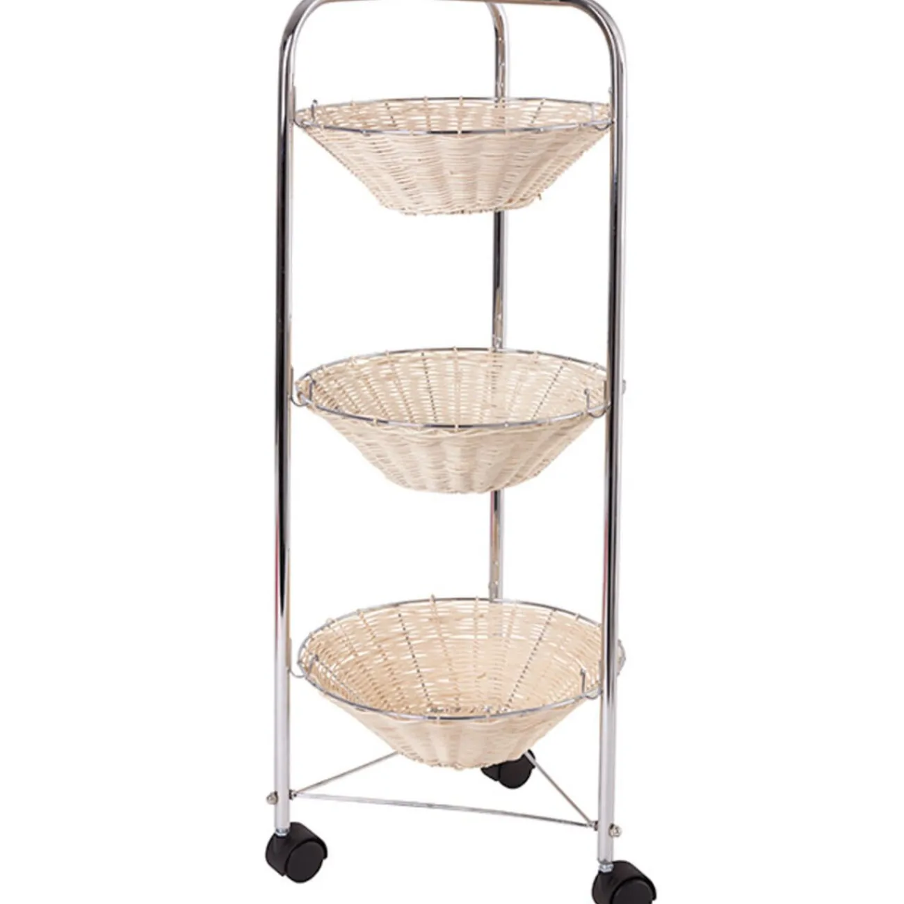 Resserre à légumes en métal avec 3 paniers en osier, dim. 32x32xh.78 cm.