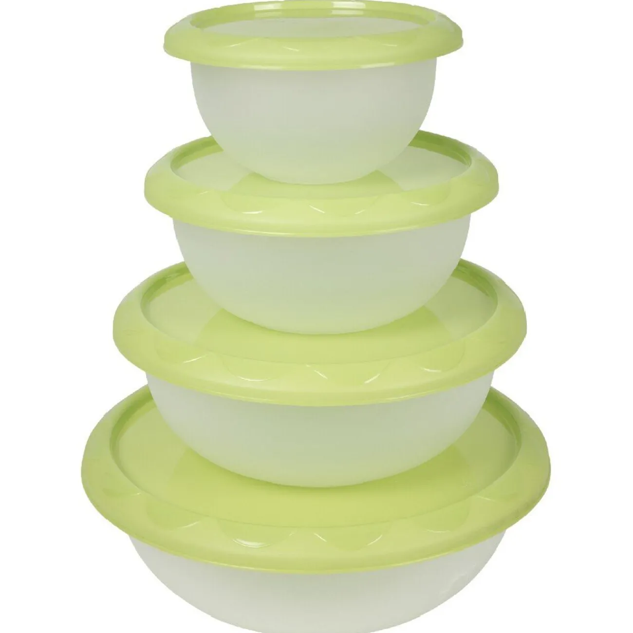 Gagnez de la place avec ces 4 saladiers empilables avec couvercle vert. 4 dimensions pour le guacamole, la sauce vinaigrette, les chips et la salade.