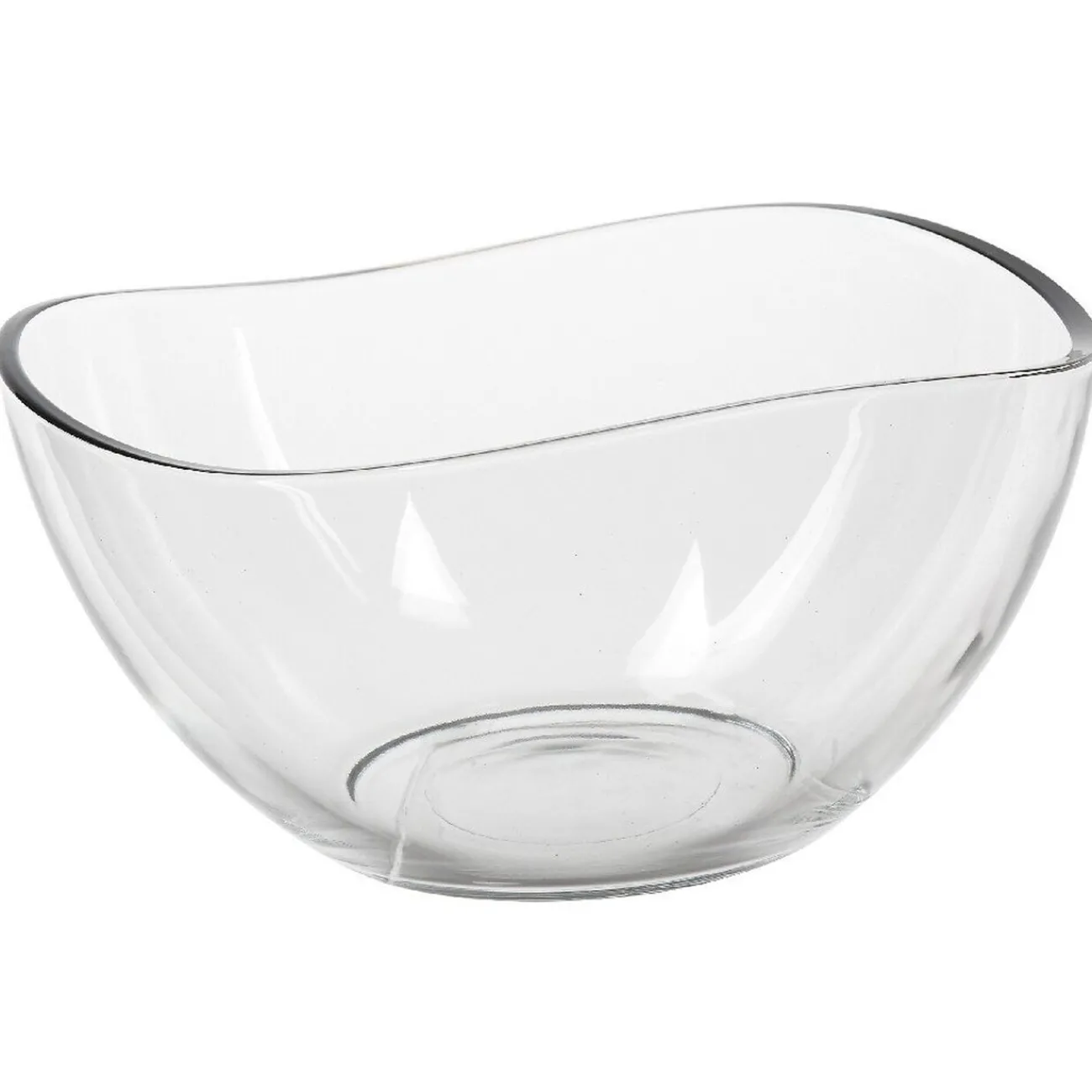 Saladier rond transparent avec bord en forme de vague.