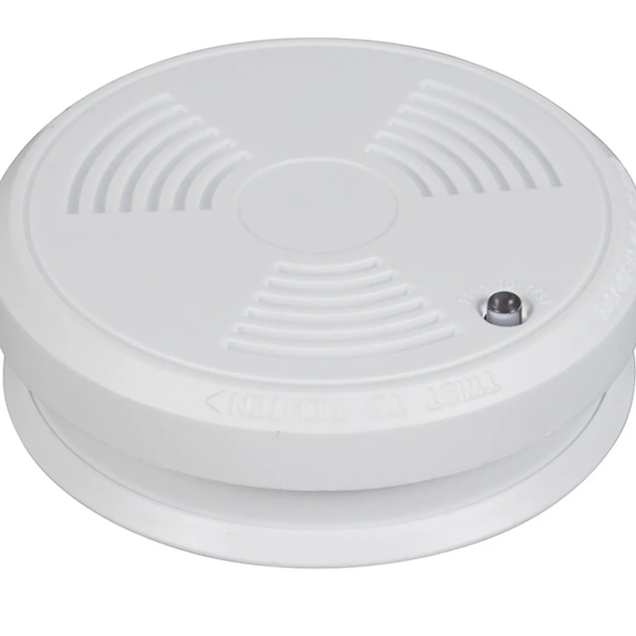Détecteur de fumée, ø 10 cm, plastique, respecte les normes CE. Détecte rapidement le départ d’incendies domestiques grâce à son capteur optique.