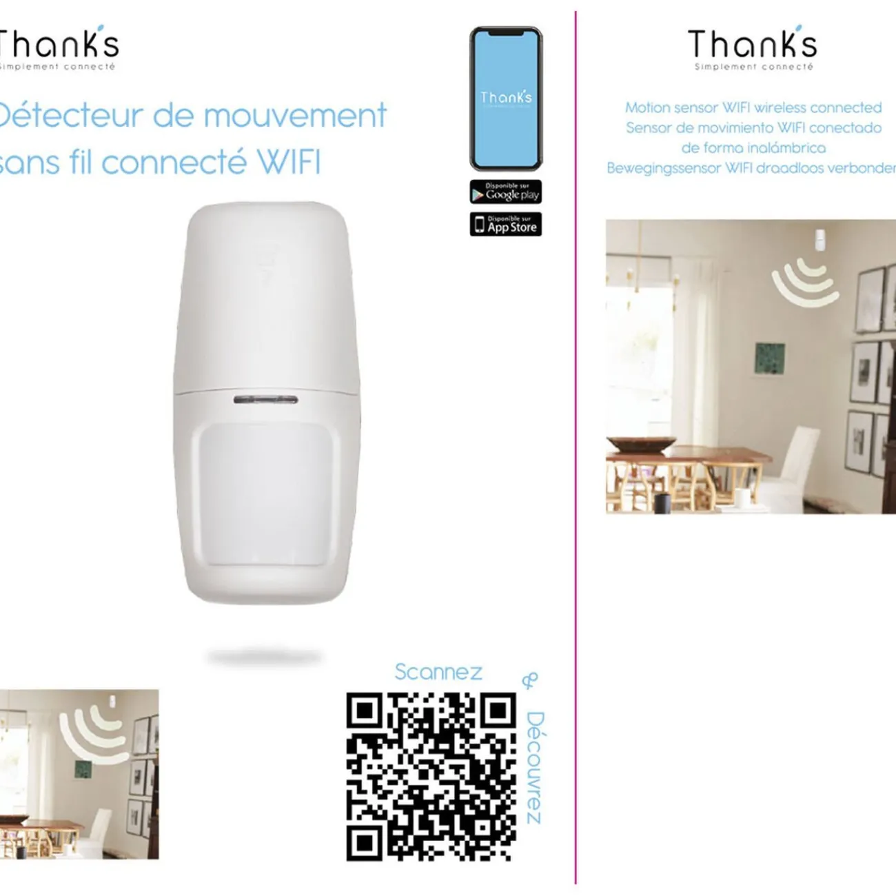 Détecteur de mouvement sans fil connecté WIFI.