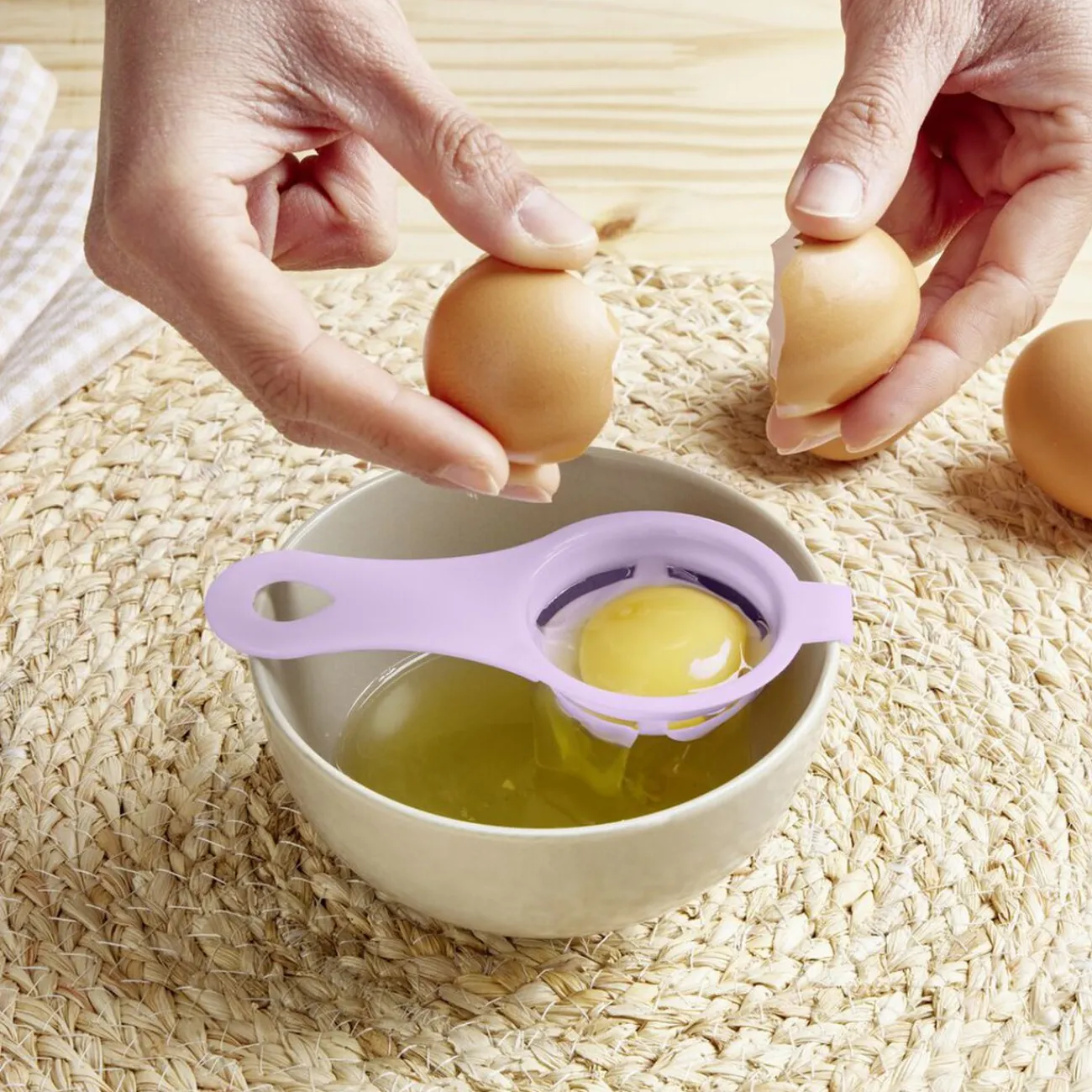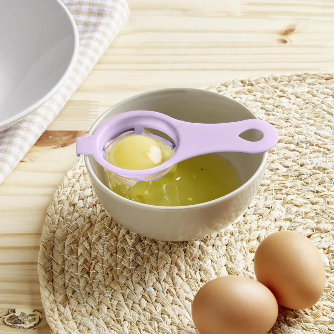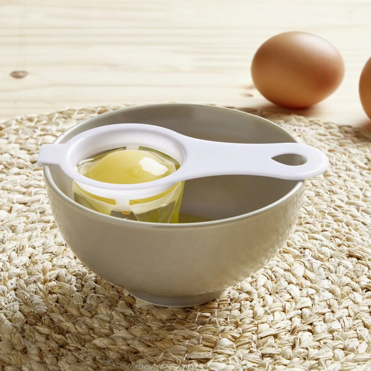Facilitez la préparation de vos recettes avec ce séparateur de blanc d’oeuf en plastique conçu pour une utilisation simple et efficace.