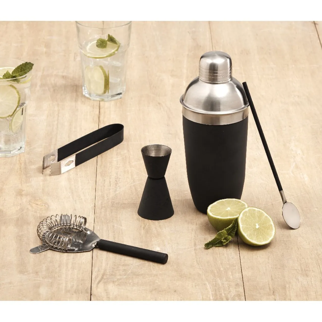 Devenez un vrai barman et jonglez avec shaker. Réalisez de beaux et délicieux cocktails maison en dosant, mixant et mélangeant grâce aux 5 accessoires. Pour des fêtes arrosées de bonne humeur, ce service à cocktail contient :