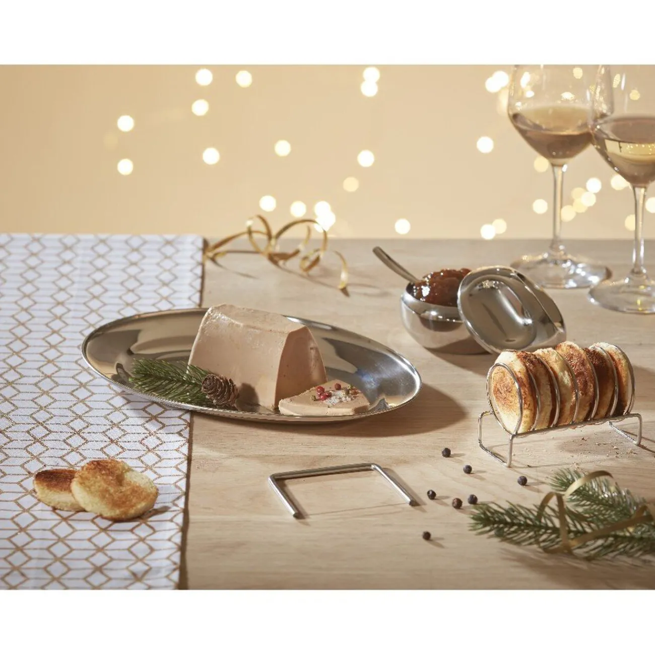 Pour épater vos invités le soir du réveillon, optez pour ce service à foie gras ! Son design en inox vous rappellera les services de grands restaurants et apportera un style élégant à votre table. Très pratique, il contient un emplacement à toast et des pots à condiments pour une présentation raffinée de votre entrée. Bon appétit !