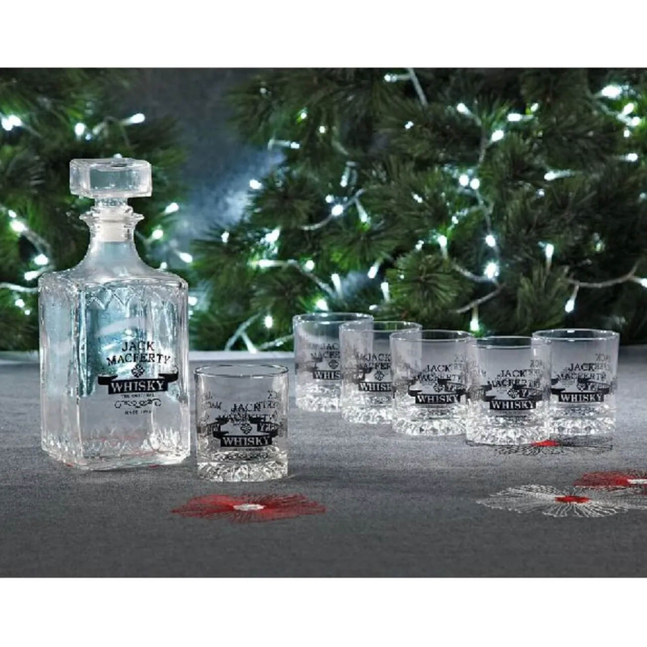 Service à Whisky, décor Jack Macferty, comprenant 6 verres cont. 22.5 cl et 1 carafe cont. 1 L.